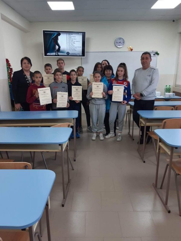 Отминаха Новогодишните празници, но все още се радваме на успехите свързани с тях! Пристигнаха почетните грамоти от Четиринадесети национален конкурс „Коледна магия“ 2022 на РБ „Сава Доброплодни“ Сливен. Те бяха връчени на спортистите от група по интереси „Вълшебни багри“ с ръководител Гергана Донева. Гости на тържеството бяха Директора на СУ „Димитър Рохов“ г-н Лъчезар Дойчев и заместник директорите по учебна дейност г-жа Наташа Иванова и г-жа Лидия Петрова, още и преподавателят по история г-жа Стефка Атанасова. Водещ беше шампионката от 10а клас Християна Василева. Импровизираното тържество завърши с почерпка на децата с вкусна и красива торта – изненада от г-жа Донева. Колко е хубаво когато всички останат доволни от положения труд! Браво!