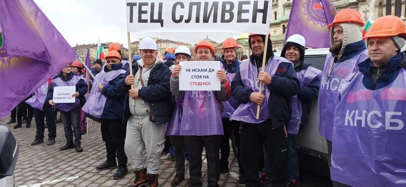 Участие на работници от „Топлофикация – Сливен – инж. Ангел Ангелов“ ЕАД на протеста пред Народното събрание от 12.1.2023г. с искане за промяна на Плана за възстановяване и устойчивост с цел недопускане затваряне на топлоелектрическите централи.