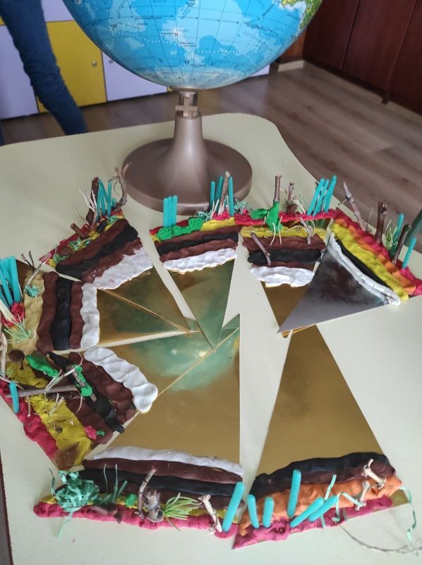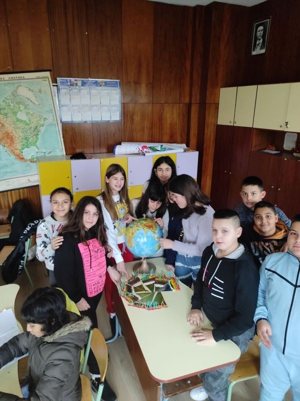 Ученици от 5 клас изработиха природната среда на Земята с помощта на пластилин, сламки и природни материали. Урокът бе проведен като част от проектно-базираното обучение на децата, което им позволява чрез преживяване да усвоят ключови знания от ДОИ, да ги приложат на практика и да развият преносими умения като критично мислене, работа в екип, самоинициатива и самоконтрол.