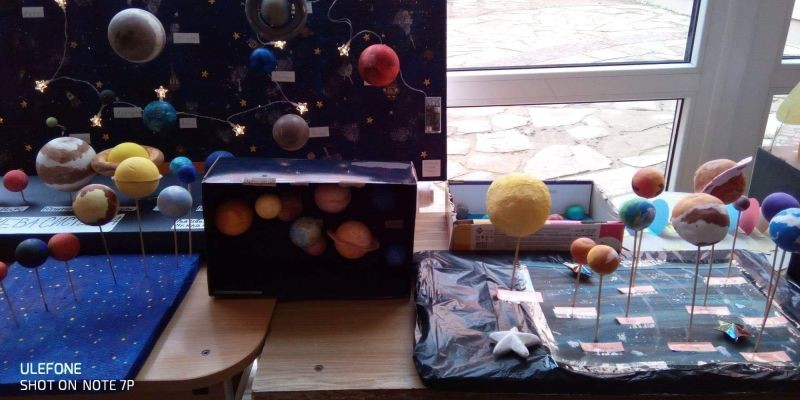 Учениците от IV „а”, IV „в” и IV „г” клас подредиха изложба на тема "Слънчева система".