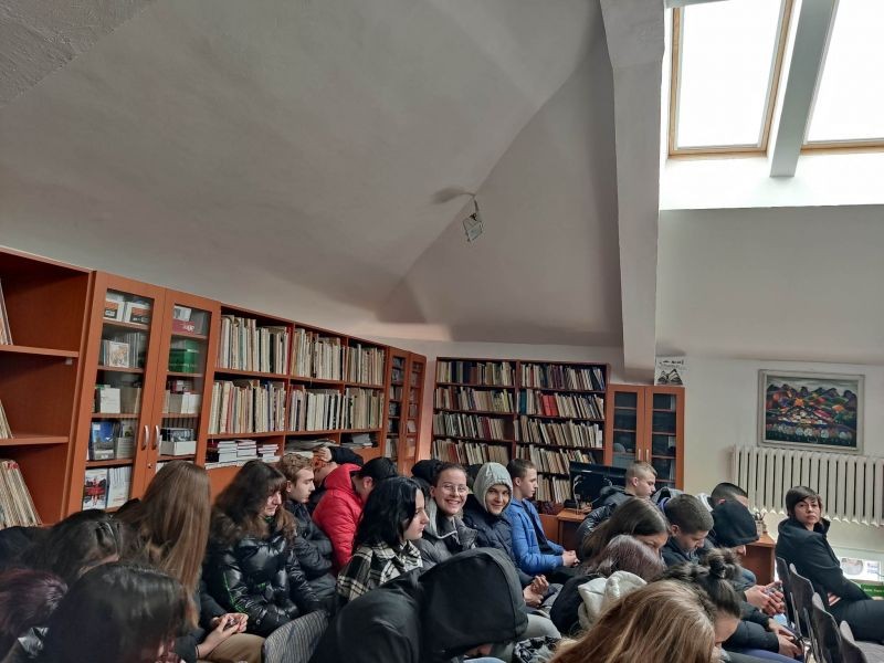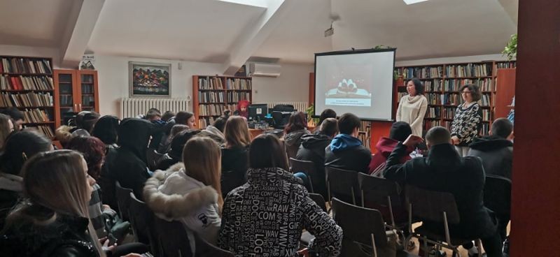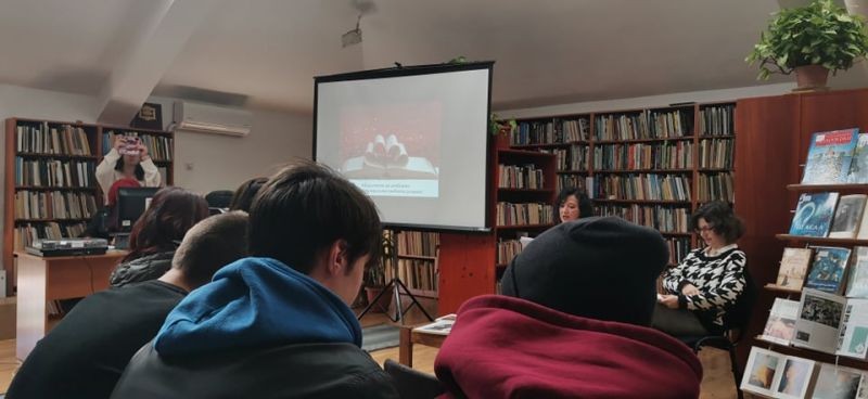 Днес учениците от IXб и XIб клас бяха гости на Регионална библиотека „Сава Доброплодни“, където за десета поредна година се провежда Седмица на любовта. Гимназистите присъстваха на презентацията „На крилете на любовта с най-популярните любовни романи“. Утре в инициативите на библиотеката ще се включат и учениците от XII клас, които ще вземат участие в разговор за любовта като висша ценност заедно със свои връстници от ППМГ „Добри Чинтулов“. По инициатива на учениците от Xа клас още миналата седмица в двете сгради на гимназията ни бяха поставени пощенски кутии за валентинки „Кажи обичам те“, които утре ще зарадват своите получатели.