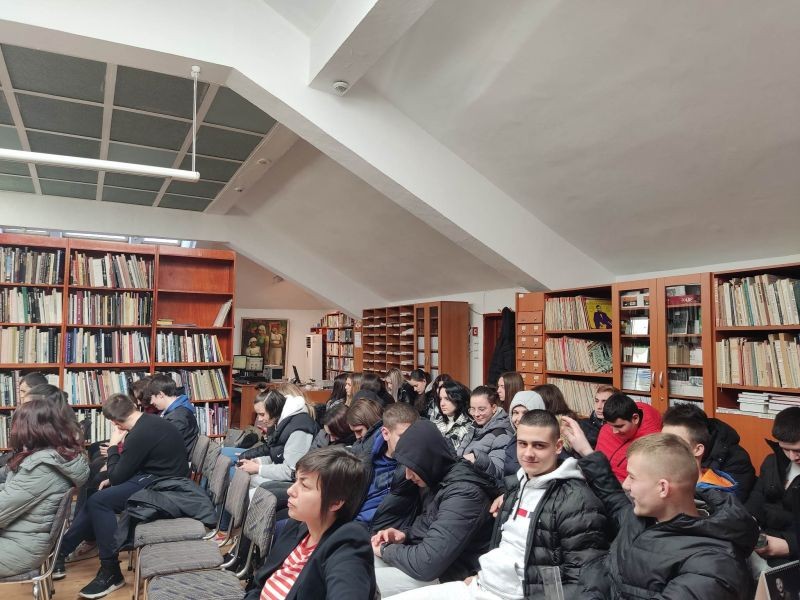 Днес учениците от IXб и XIб клас бяха гости на Регионална библиотека „Сава Доброплодни“, където за десета поредна година се провежда Седмица на любовта. Гимназистите присъстваха на презентацията „На крилете на любовта с най-популярните любовни романи“. Утре в инициативите на библиотеката ще се включат и учениците от XII клас, които ще вземат участие в разговор за любовта като висша ценност заедно със свои връстници от ППМГ „Добри Чинтулов“. По инициатива на учениците от Xа клас още миналата седмица в двете сгради на гимназията ни бяха поставени пощенски кутии за валентинки „Кажи обичам те“, които утре ще зарадват своите получатели.