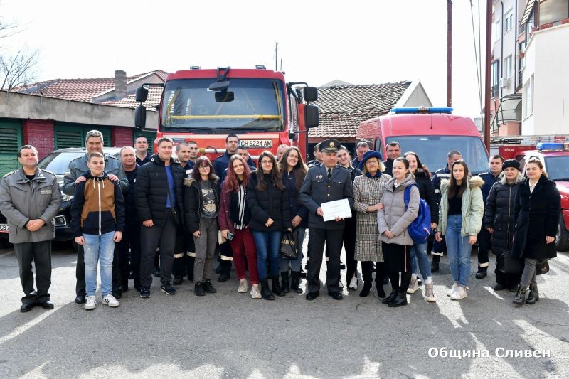 Гимназистите от Сливен, участвали в националния конкурс за есе „Доброволчеството – акт на солидарност в борбата с бедствията и пожарите“, получиха благодарности за инициативността си и активното участие в Националния конкурс за есе „Доброволчеството – акт на солидарност в борбата с бедствията и пожарите“. Те получиха грамоти, подписани от директора на Главна дирекция „Пожарна безопасност и защита на населението“ гл. комисар Александър Джартов. Това стана на кратка церемония в сливенската противопожарна служба. Грамотите връчиха директорът на РД „ПБЗН“ комисар Владимир Демирев и гл.експерт Снежана Кънева от общинския отдел „Сигурност и управление при кризи“.