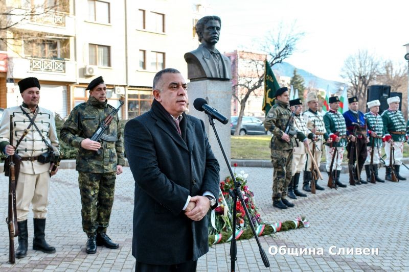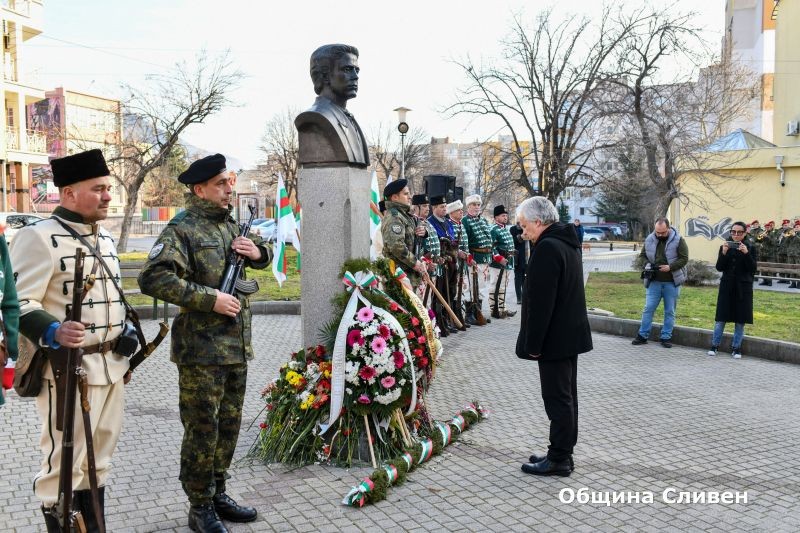 Проявите в Сливен по повод 150-ата годишнина от трагичната гибел на Васил Левски продължиха и днес. На площада, носещ неговото име, жители и гости на града се стекоха на общоградската церемония, да отдадат почит пред един от най-свидните синове на България.