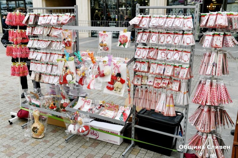 Първите търговски маси за мартеници вече заеха места по пешеходната зона в Сливен и напомнят, че пролетта наближава. Търговците предлагат разнообразие в изработката и украсата. Освен традиционните, могат да се видят мартеници за дома, за офиса, за автомобила.