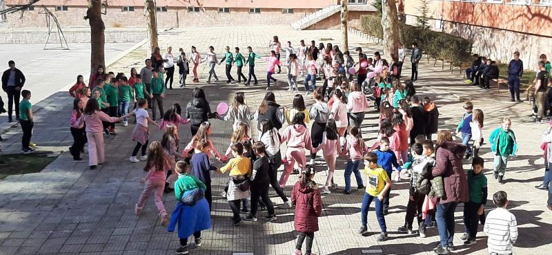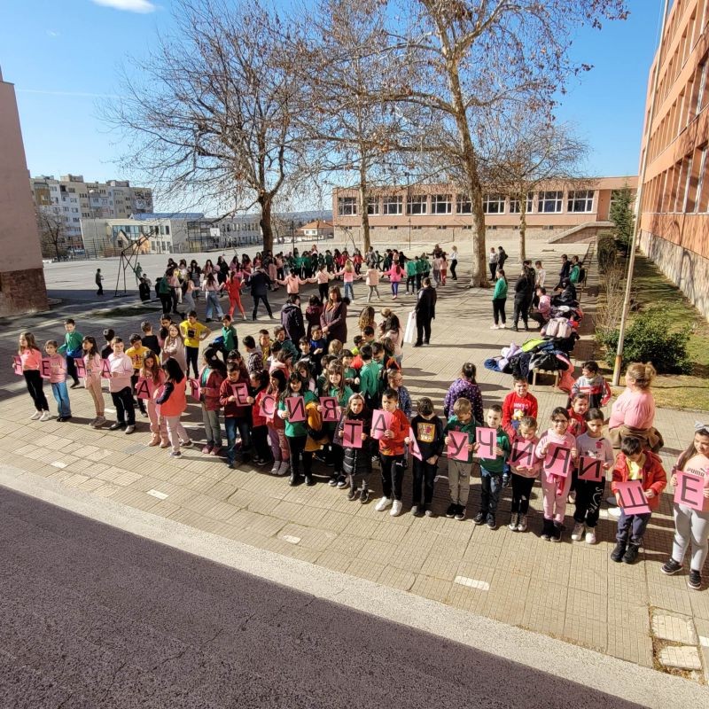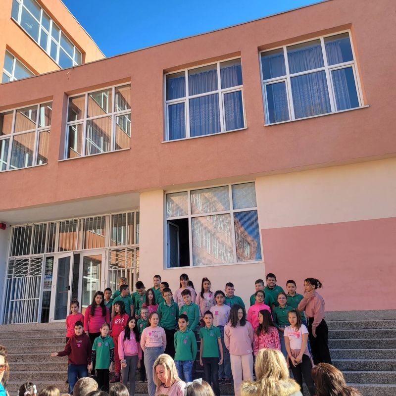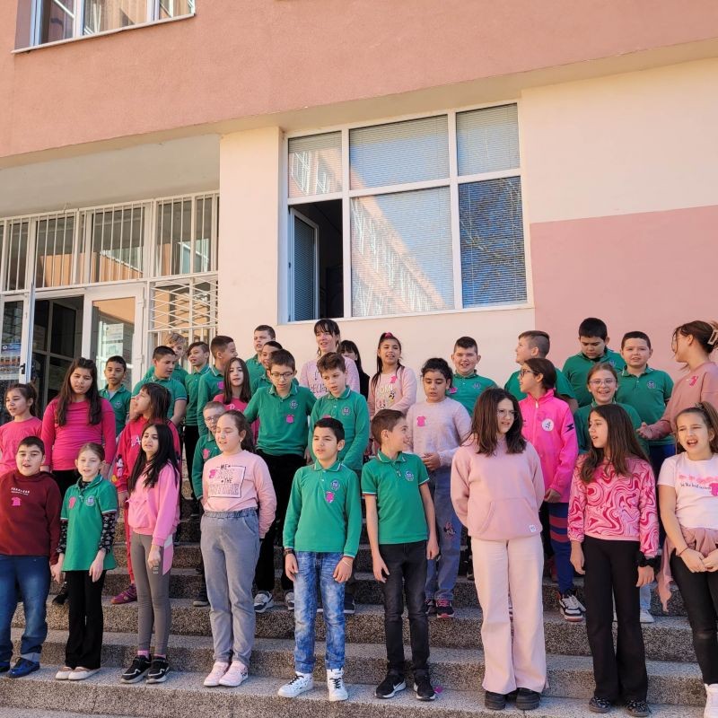 С песен за приятелството и български народни хора, учениците от СУ „Йордан Йовков“ отбелязаха Деня за борба с тормоза в училище, познат още като Ден на розовата фланелка.