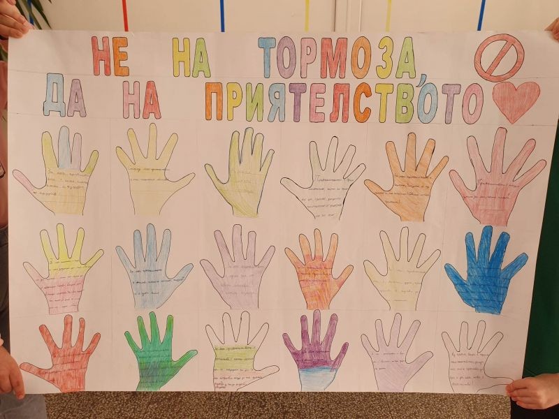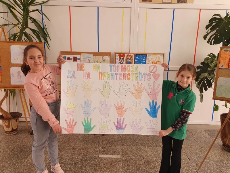 В Деня на розовата фланелка учениците от група за ЦОУД 4. клас отправиха своето посланието за толерантност и приятелство към всички нас. Те изработиха цветно табло, което символизира тяхната подадена ръка за разбирателство, мир и сигурна училищна среда.