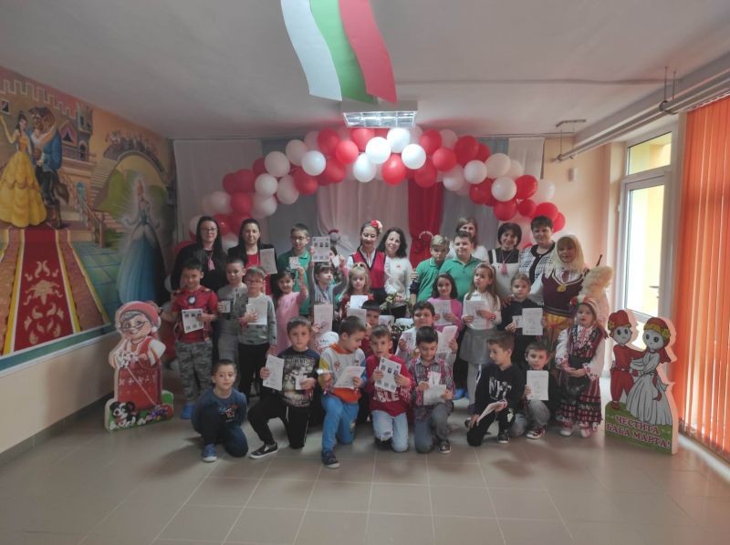 С пожелание за здраве и много усмивки ученици от СУ "Йордан Йовков" - Сливен посетиха децата от ДГ "Вержин и Хаик Папазян". Те поздравиха своите приятели с пристигането на Баба Марта и настъпващата пролет. С много песни и стихотворения им пожелаха да бъдат весели и жизнерадостни като слънцето, бързи и смели като вятъра, усмихнати и трудолюбиви като пчеличките. В пъстра кошничка бяха подготвени ръчно изработени красиви и оригинални мартенички и книжки за всяко дете от детската градина.