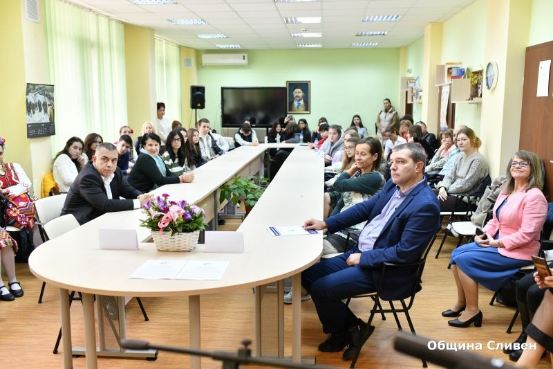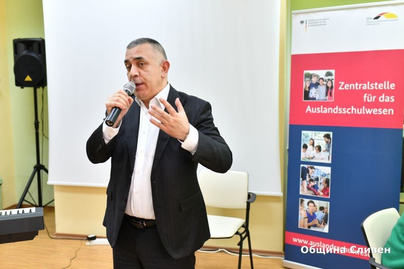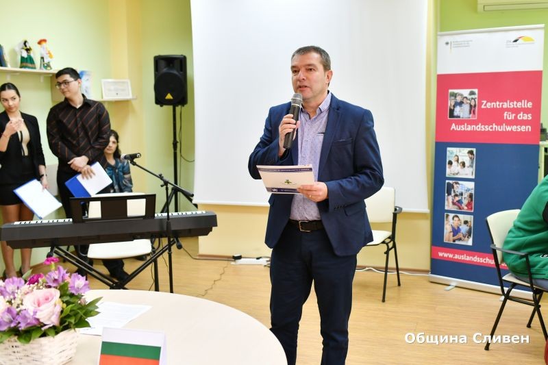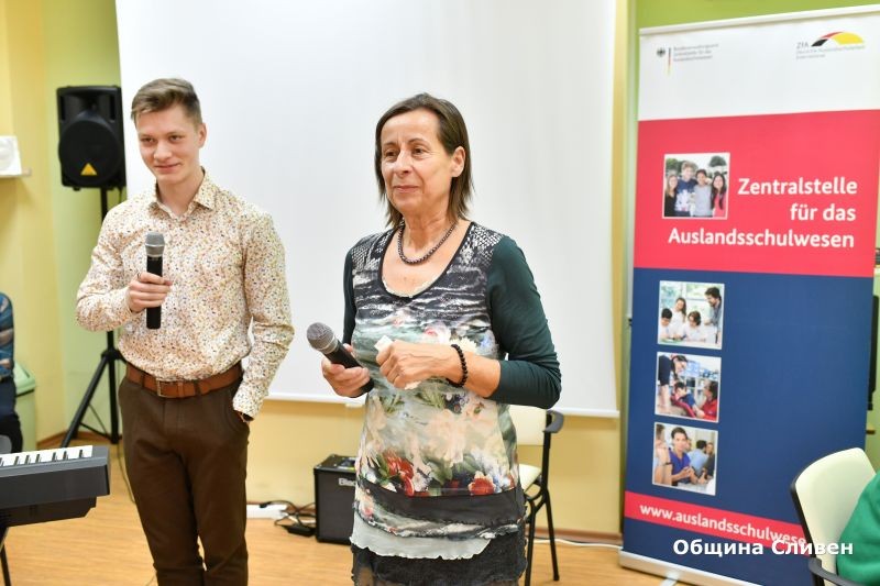 Приветствие и благодарност отправиха още домакините от РУО – Сливен, регионалният консултант по немски език към Посолството на Германия Сибиле Шабанска и директорът на гимназията Ефросина Кисьова.