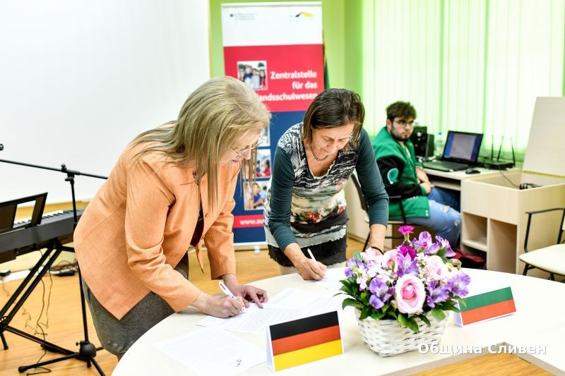 Профилирана гимназия с преподаване на западни езици „Захарий Стоянов“ в Сливен, в партньорство с консултантския отдел по немски език към Посолството на Германия в България, ще провежда подготовка и изпити по немски език за диплома I ниво. Договорът за съвместните дейности бе подписан днес на церемония в сградата на Регионалното управление на образованието в Сливен. Сред гостите на събитието бе кметът Стефан Радев, който благодари за поканата и приветства партньорството, насочено към все по-големи шансове за развитие на учениците.