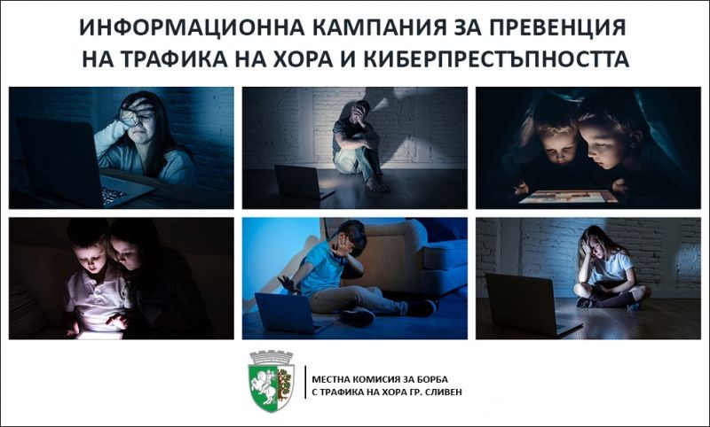 Местната комисия за борба с трафика на хора (МКБТХ), гр. Сливен организира информационна кампания за превенция на трафика на хора и киберпрестъпността, в контекста на използването на интернет за набиране, експлоатация и контрол на уязвими лица. Основен акцент в инициативата е целенасочена работа по превенция на трафика на хора в училищна среда, с фокус безопасното онлайн общуване и предпазване на ученици от секстинг: една от най-големите заплахи свързана с размяна на снимки или клипове със сексуално съдържание и попадане в сексуална принуда и изнудване. Ще бъдат проведени информационни срещи с родители, с цел предоставяне на информация относно рисковете за децата в социалните мрежи, с фокус методите за въвличане в трафик на хора чрез интернет и комуникационните технологии и последващото контролиране на пострадалите лица. МКБТХ – Сливен планира и провеждане на специализирано обучение за педагогически специалисти на тема: „Привличане на родителите в процеса на превенция на рисковото поведение при децата с фокус противодействие на сексуалната експлоатация и ранните бракове”.