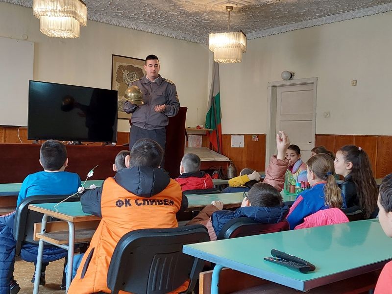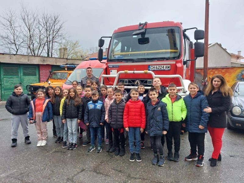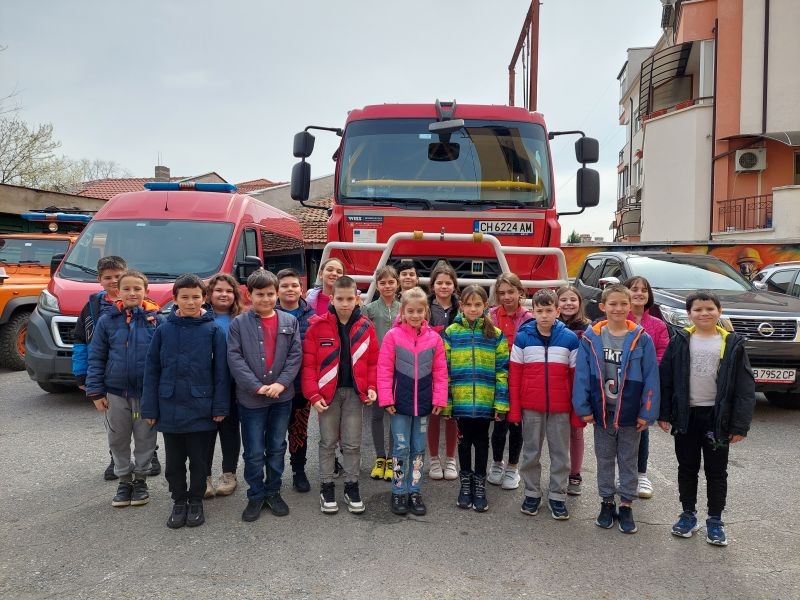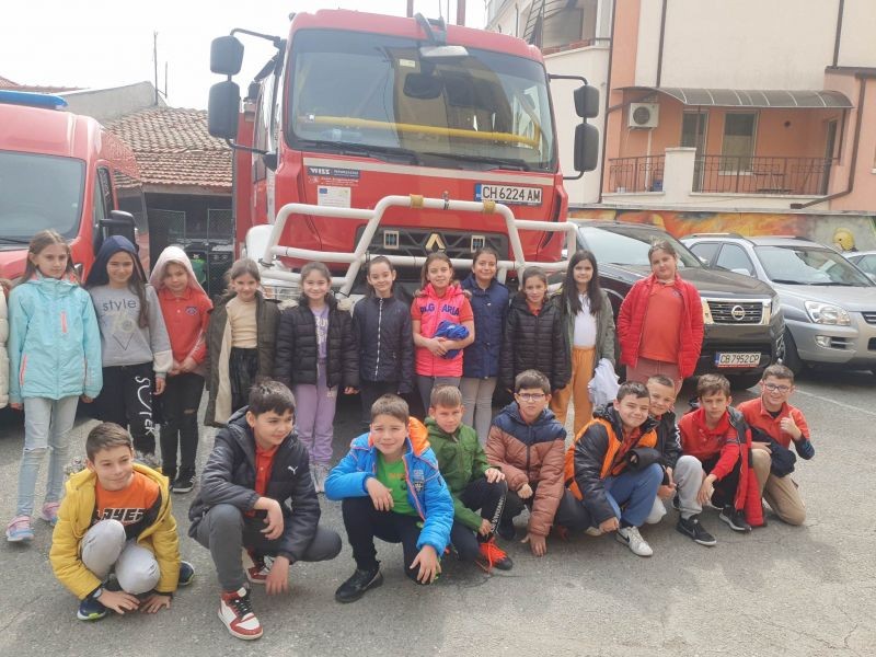 На 21 и 22 март третокласниците посетиха Районна служба пожарна и аварийна безопасност – гр. Сливен. Г-н Стефан Димитров- началник на районната служба изнесе лекция, която премина в беседа, на тема: „Как да реагираме правилно при пожар“? Учениците показаха завидни знания, като отговаряха правилно на поставени въпроси. Демонстрираха, че знаят телефонния номер за спешни случаи, как не трябва да изпадат в паника при кризисна ситуация, как бързо и безопасно да се придвижат извън зоната на бедствието. След официалната част в конферентната зала учениците бяха изведени в гаража и двора на РСПАБ, където огнеборците демонстрираха как слизат по пилона за бързо придвижване, обстойно разгледаха оборудването на пожарните машини, качиха се на шофьорските места, а за „десерт“ лично, с малките си ръчички, гасиха въображаем пожар, като едва удържаха дебелия маркуч със силната струя вода и пяна.