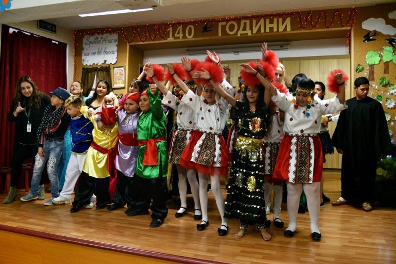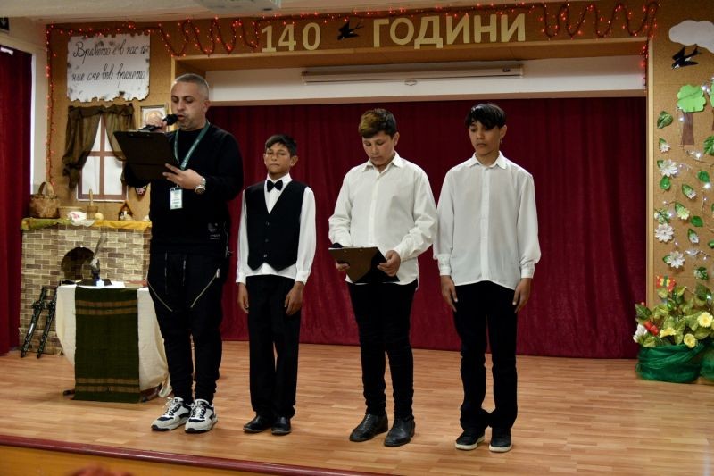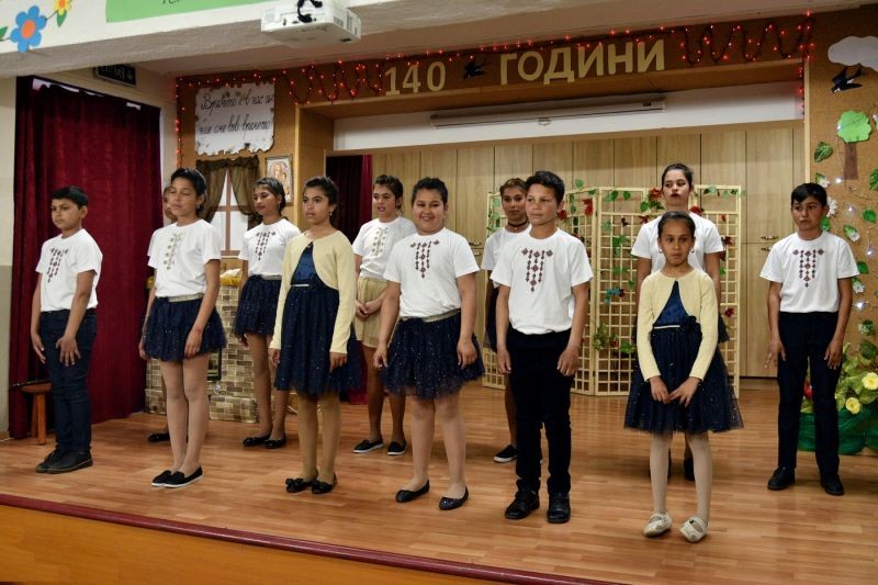 Празничното събитие се състоя в училищния киносалон в присъствието на родители, настоящи и бивши учители, много гости. На сцената прозвуча стихотворение, посветено на 140-ия рожден ден на школото. Имаше и малък драматургичен спектакъл по мотиви на „Паисий“ от Вазовата „Епопея на забравените“. Редуваха се вокални изпълнения на любими детски песни със сложни български хороводи и традиционен празничен танц от Индия, прародината на ромите. Очаквано, имаше и приказка. Преди да изиграят историята на Пепеляшка обаче, с чувство за хумор малките театрали попитаха залата: „От какво имат нужда децата, когато мама и татко са на работа в чужбина, баба гледа сериал, а дядо се прибира изморен и казва да не го закачаме?“. И сами отговориха: „Децата имат нужда от училище и от приказка!“. За разкош бе отправен специален поздрав към по-възрастните зрители с популярен в миналото шлагер за хубавата Джиджи и тримата й братя. Известна песен за добрите сърца сложи край на концерта, а учители се качиха на сцената и запяха заедно с учениците си.