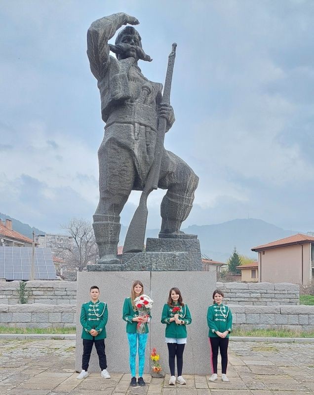 Ученици от 5 клас почетоха паметта на Панайот Хитов, като поднесоха цветя на паметника му.
