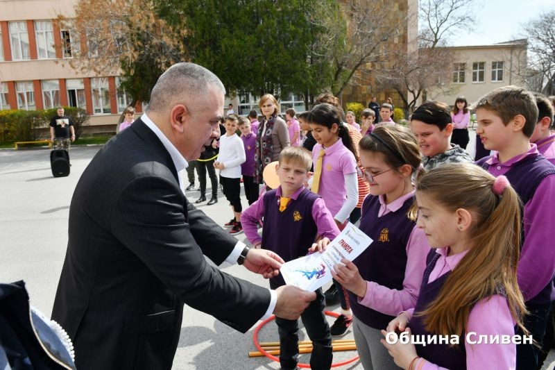 Кметът Радев поздрави екипа на училището за полаганите усилия да се подобри средата за учениците. Много градове в Европа не могат да се похвалят с училище като вашето, каза той в обръщение към домакините. На децата пожела да учат, спортуват, да изявяват талантите си и да се развиват в родния си Сливен.