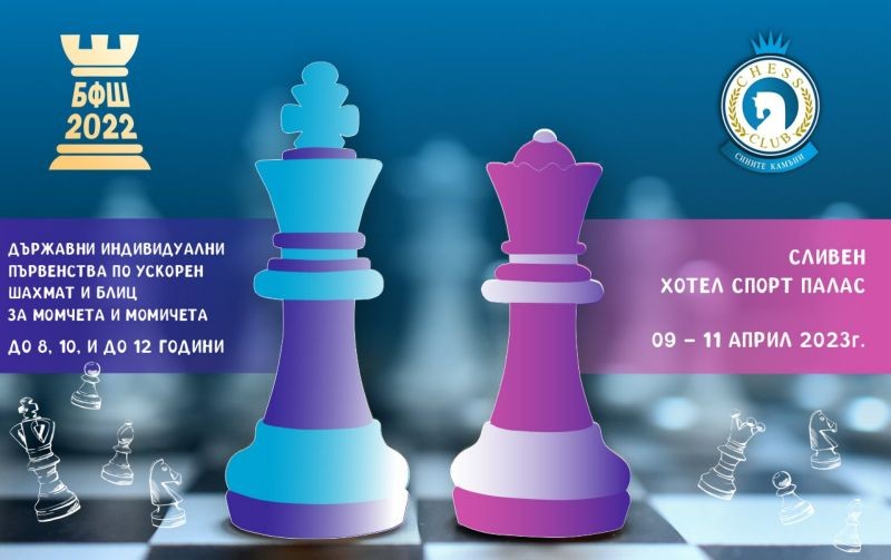 Сливен посреща държавни индивидуални първенства по ускорен шахмат и блиц за момчета и момичета до 8, 10 и 12 годишна възраст. След дългогодишно прекъсване, благодарение на усилията на Шахматен клуб „Сините камъни“ и съдействието на Българската федерация по шахмат 2022, Сливен ще бъде домакин на шахматния форум. Близо 200 деца от цяла България се очаква да се включат този уикенд - от 9 до 12 април, излъчвайки шампионите в своите категории . Това е голям празник за шаха в града под Сините камъни, който е с традиции в този спорт.