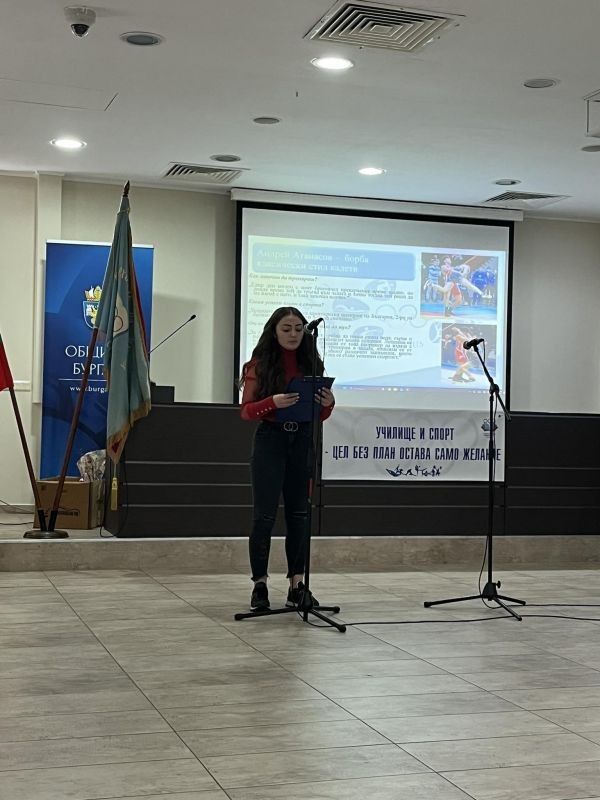 Добромира Стоянова и Силвия Петкова представиха нашето училище на ученическата конференция на тема "Училище и спорт - цел без план остава само желание." Ученици от 8 до 12 клас от спортни училища от страната прочетоха свои есета в две тематични области, обмениха добри практики по различни житейски проблеми, представиха своите постижения в спорта. Инициативата се провежда за първи път във връзка с 50-тата годишнина от основаването на Спортното училище в Бургас.