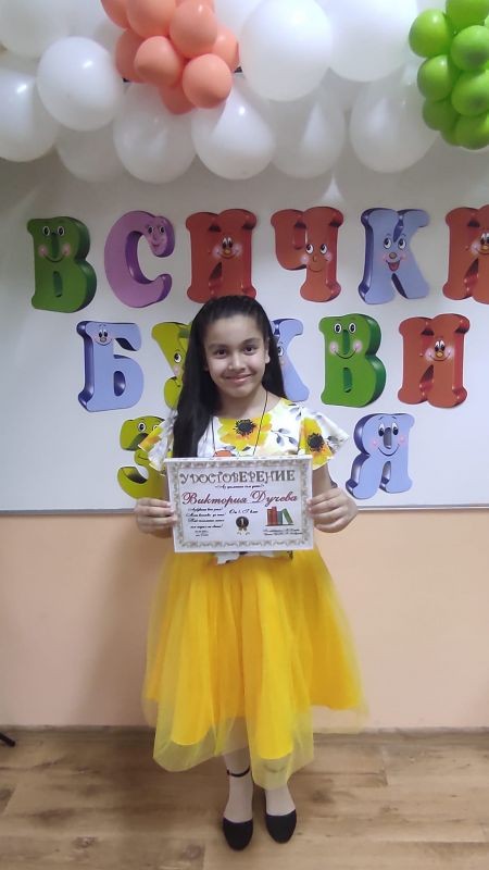 Двадесет и четири деца от 1. "г" клас и техните учители г-жа Мария Кондева и г-жа Росица Стефанова започнаха този път и днес отбелязаха своя първи празник на грамотността. За малките първокласници е поставено началото, всички могат да четат и пишат, да смятат и откриват. С грейнали очи от радост и вълнение те рецитираха, пяха и танцуваха като истински артисти, неподправени, талантливи, неповторими. Класната стая не можеше да побере родителите, гостите и емоциите. И нали всички са грамотни, получиха и подаръци, и поздравление специално от директора на училището - г-жа Величка Христова.