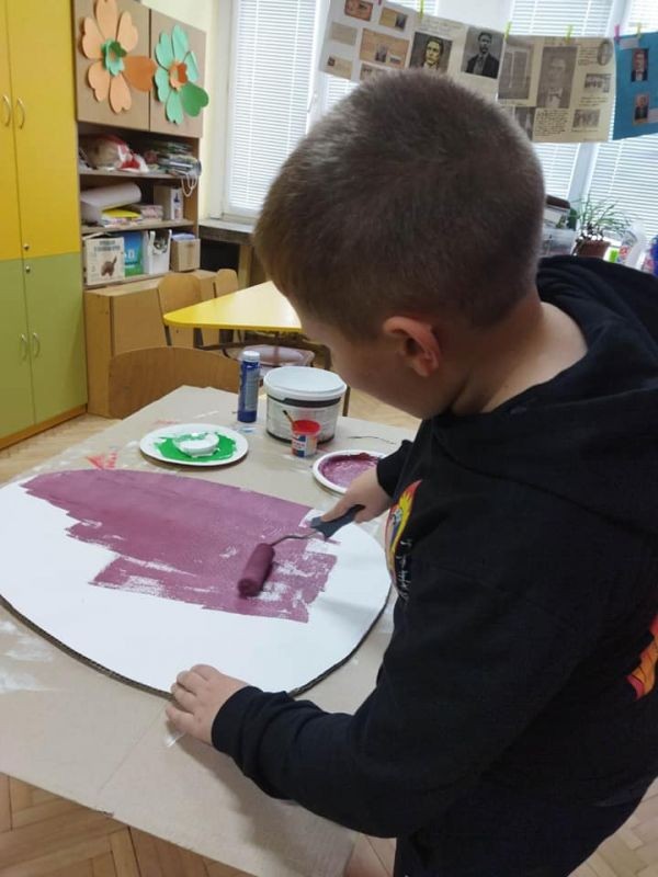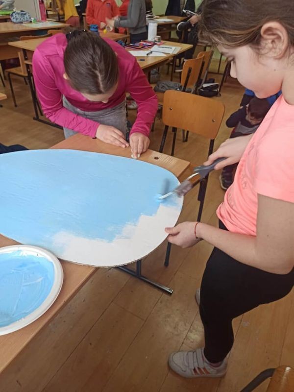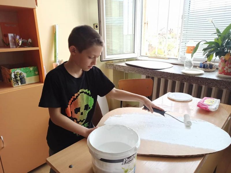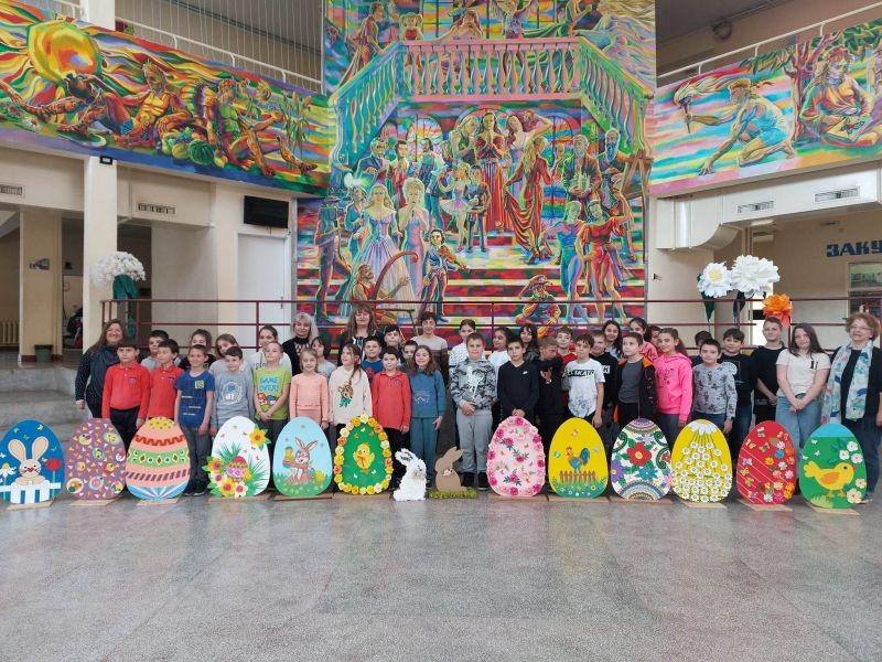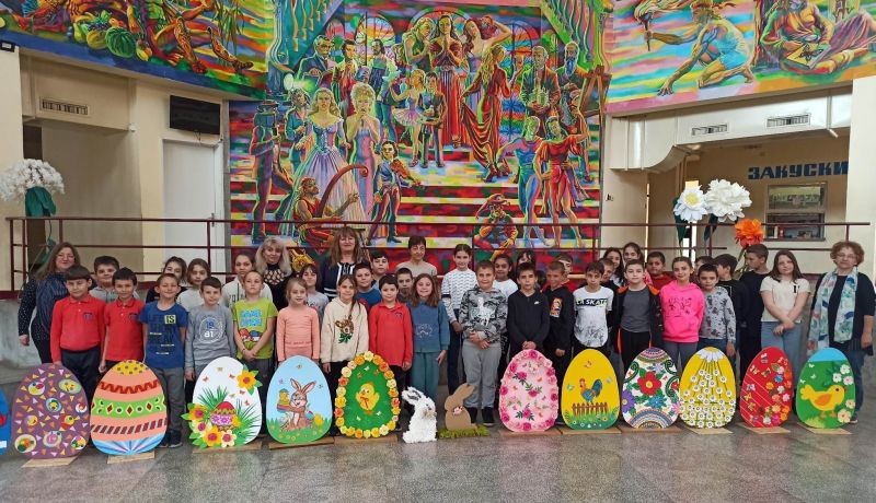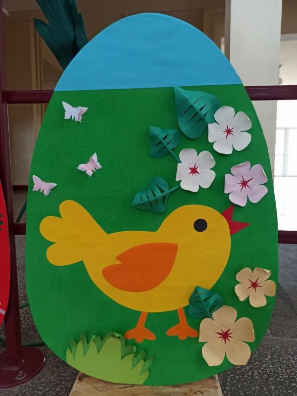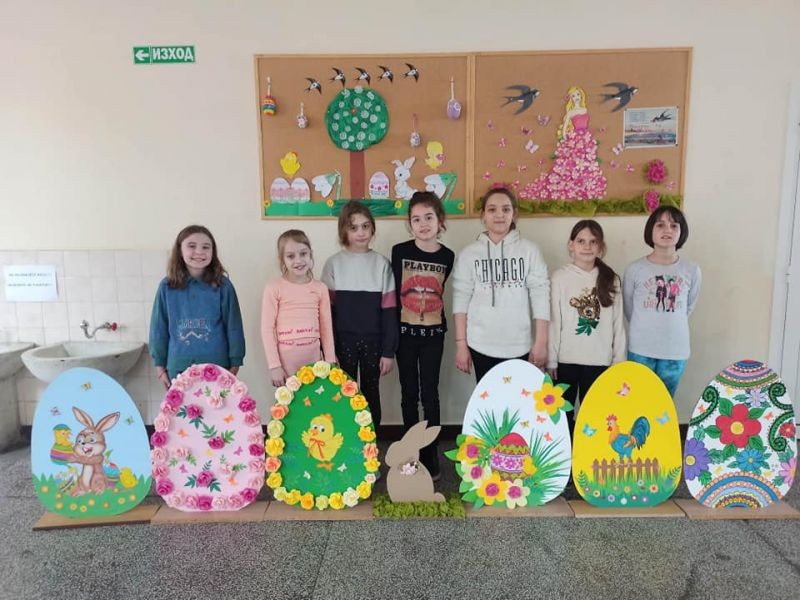 Великденската украса ще бъде поставена в коридорите на училището.