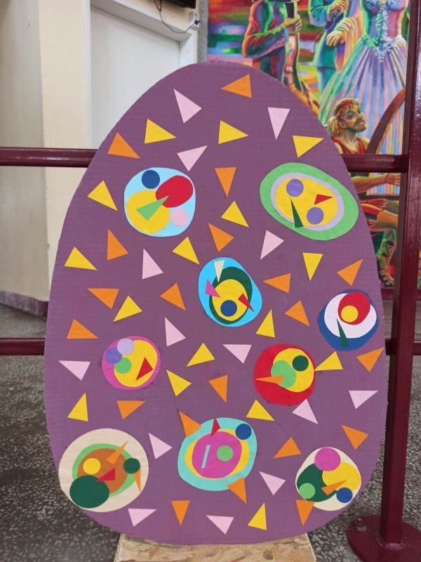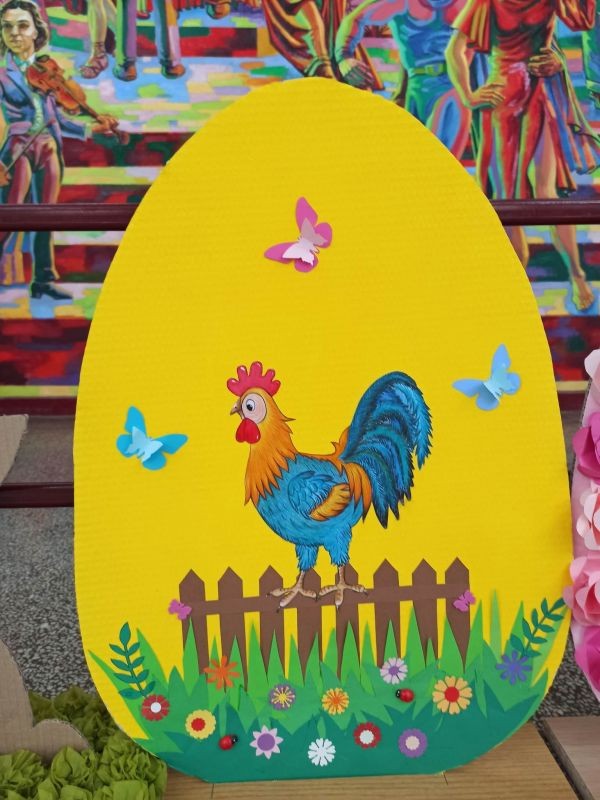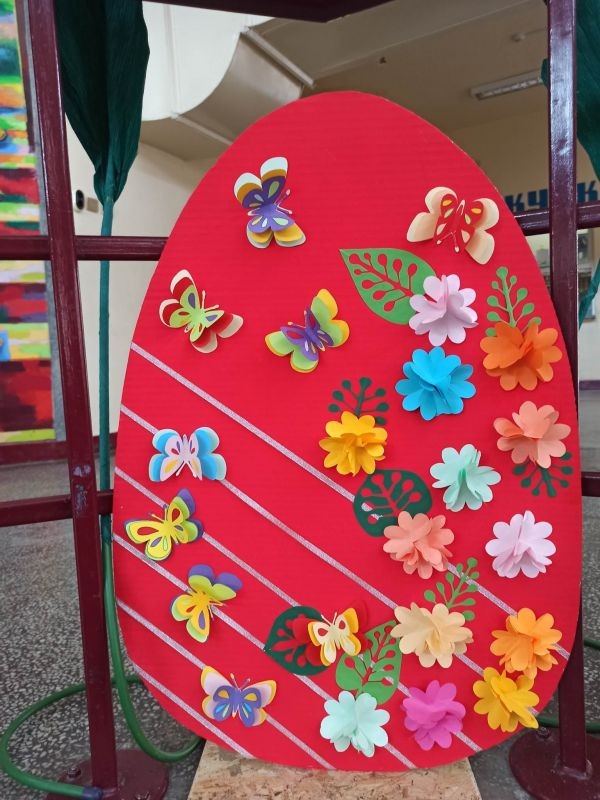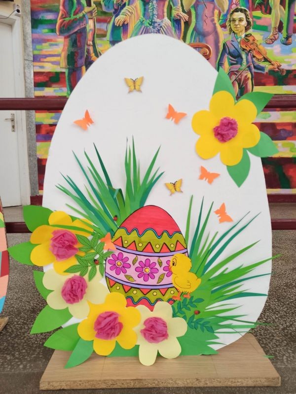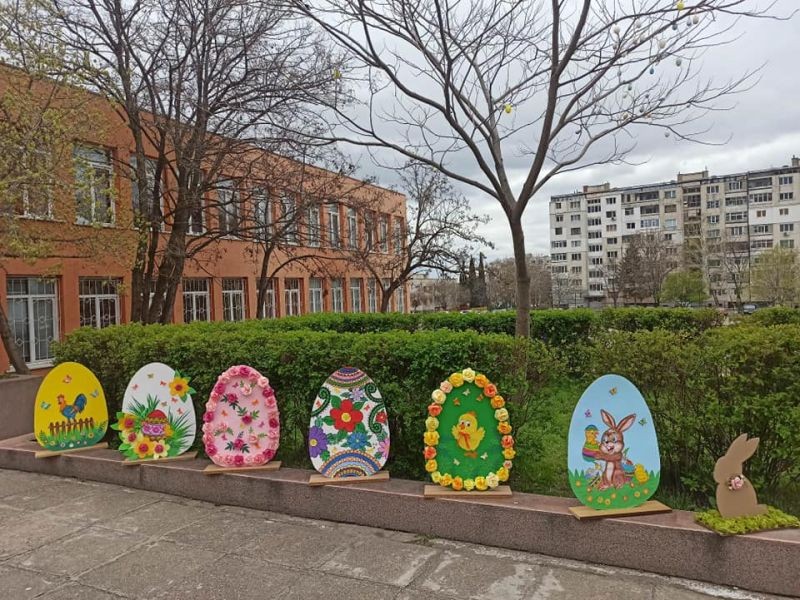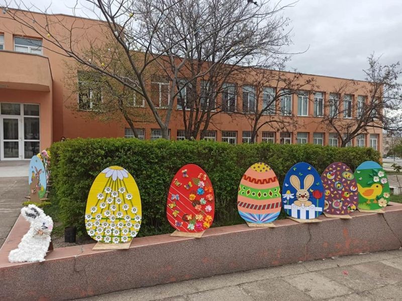 Уникална великденска украса направиха г-жа Здравка Долушанова и г-жа Мери Божкова заедно с учениците си от целодневна организация на учебния ден от ОУ "Елисавета Багряна" в Сливен. Трудът им предизвика добро настроение в двора на училището в края на учебния ден на 5 април.
