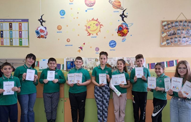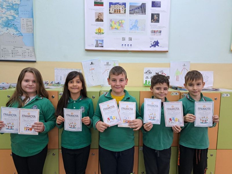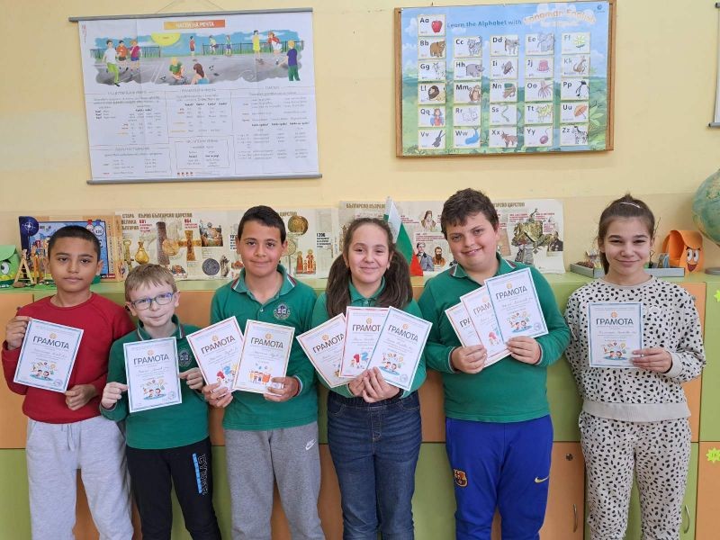 Учениците от начален етап на СУ "Йордан Йовков" - Сливен постигнаха високи резултати и показаха отлични знания и умения в състезанията: "Аз и числата", "Аз и буквите" и "Аз общувам с Европа", организирани от СБНУ.