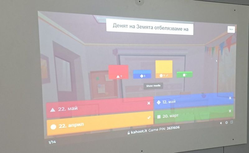 Kahoot!". Занятието включваше въпроси, свързани със защитата на нашата планета и опазването на околната среда.