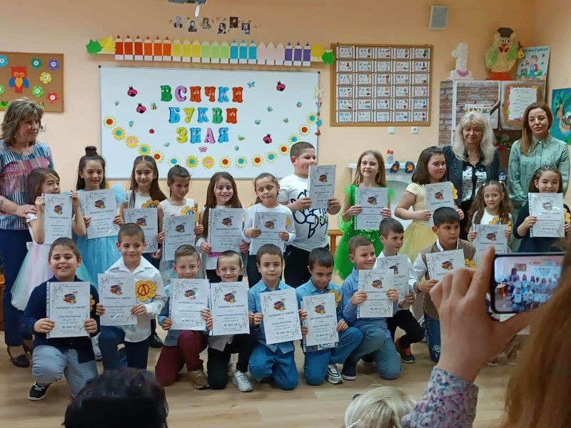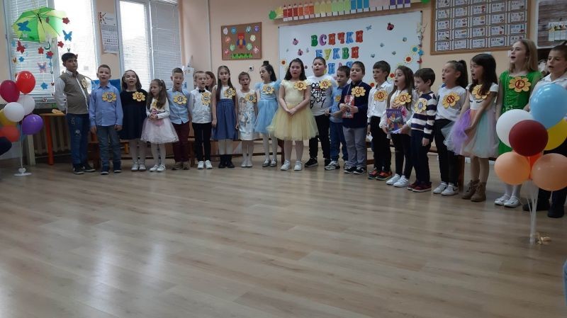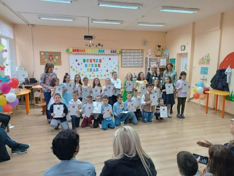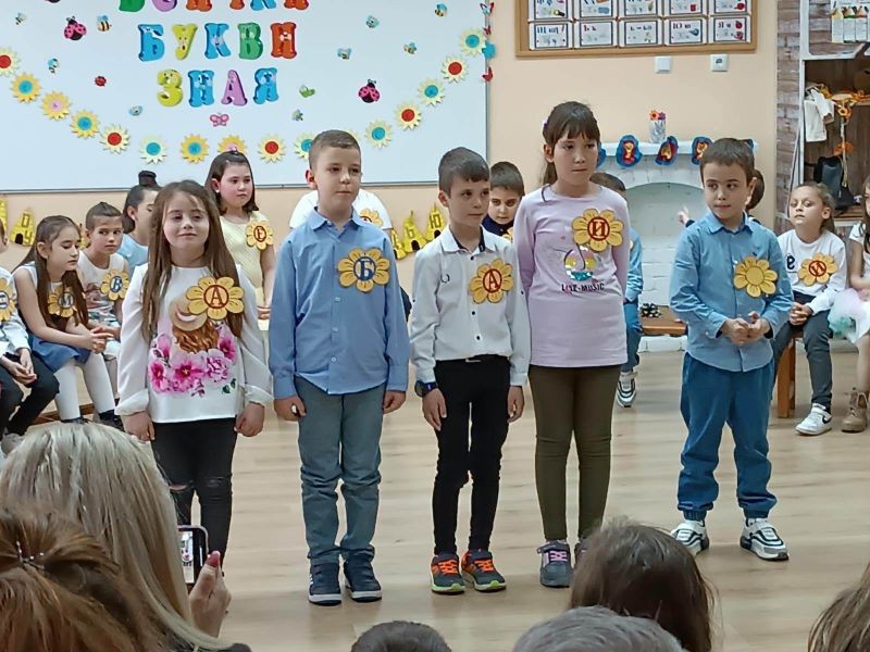 Дългоочаквано и вълнуващо бе събитието за първолаците, техните учители - г-жа Марияна Вълчева и г-жа Вера Николова, гости, родители и близки, едно истинско тържество на грамотността и знанието. Изявявайки се като истински актьори и влагайки огромно творчество, малките ученици представиха своя мини спектакъл "Букволандия", съпроводен с много стихчета, песни и танци.
