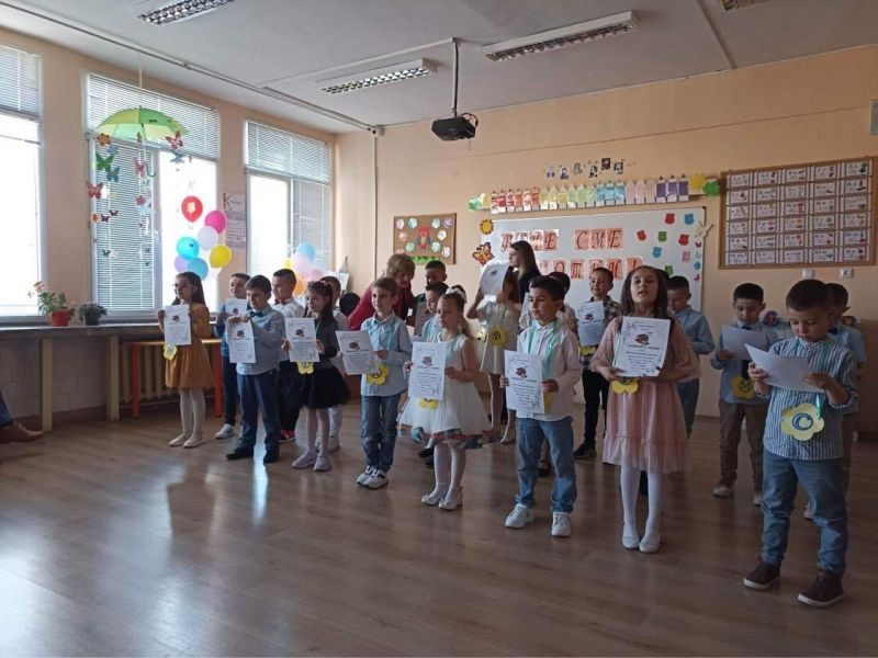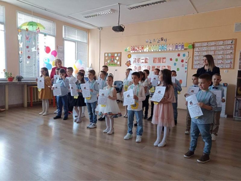 Заедно със своите учители г-жа Илка Петрова и г-жа Светослава Славова, първокласниците отбелязаха дългоочакваното събитие.