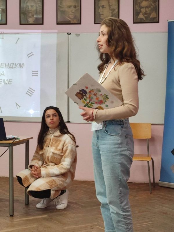 Проектът на Габриела Русева и Полина Попова – ученички от XIа клас, предлага оригинален и лесен начин да се справим с последиците от смяната на зимно и лятно часово време. Решението е лесно – в хуманитарната гимназия може да бъдат утвърдени два графика на учебното време – зимен и летен. На защитата на проекта присъства и представител на европейската комисия, който специално поздрави екипа с думите „Няма нужда да чакате Брюксел да реши всички проблеми, щом можете и сами – действайте!“
