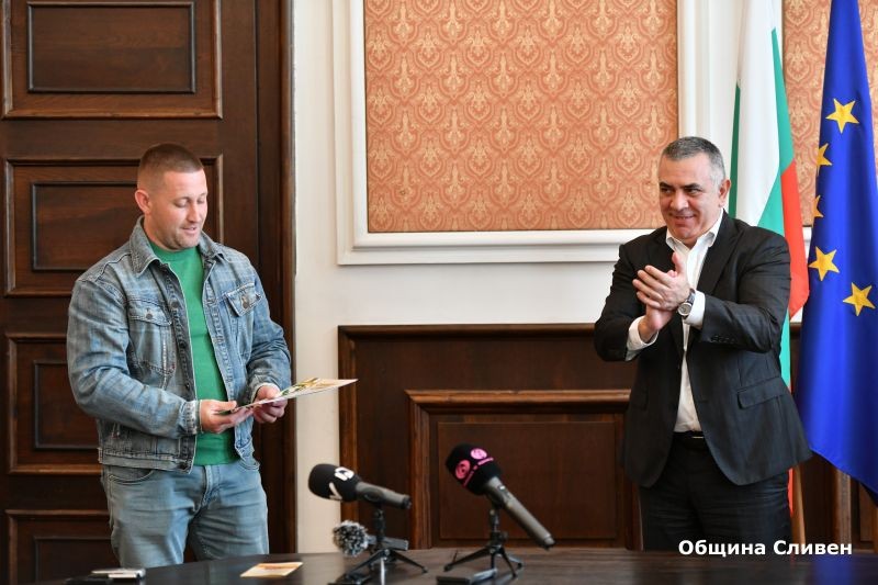 Автобусният водач Билял Хасанов бе награден от кмета на Община Сливен Стефан Радев със Значка за особени заслуги при изпълнение на гражданския и професионалния си дълг. Преди дни, по време на работа 35-годишният шофьор спаси живота на пътник, получил внезапно задушаване.