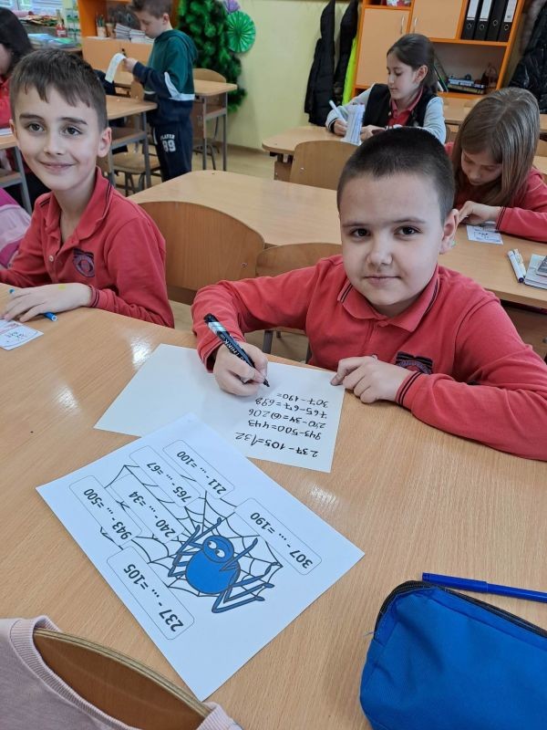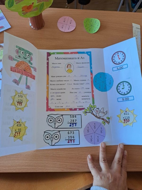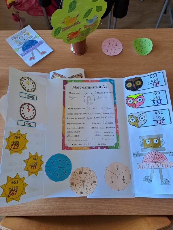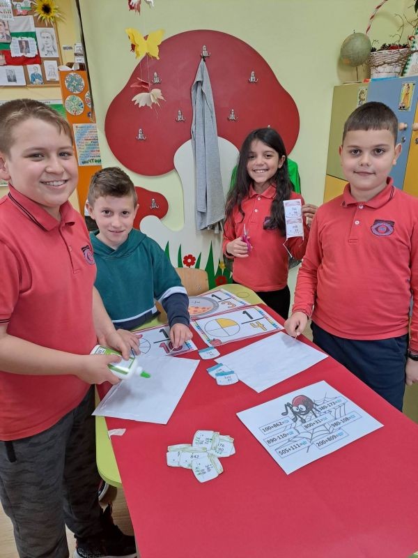 Учениците от група по интереси "Математици" в 3. "в" клас чрез игри-състезания изработиха математически лапбук. Г-жа Ивелина Иванова залага на игровия подход , защото се създават ценни умения за внимание, концентрация, самостоятелно мислене, любознателност, развива се фантазията, навици за групова и екипна работа.