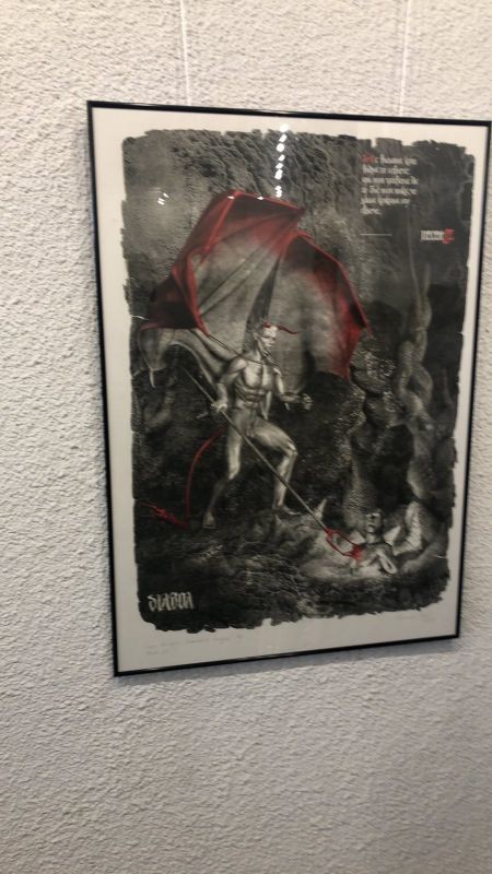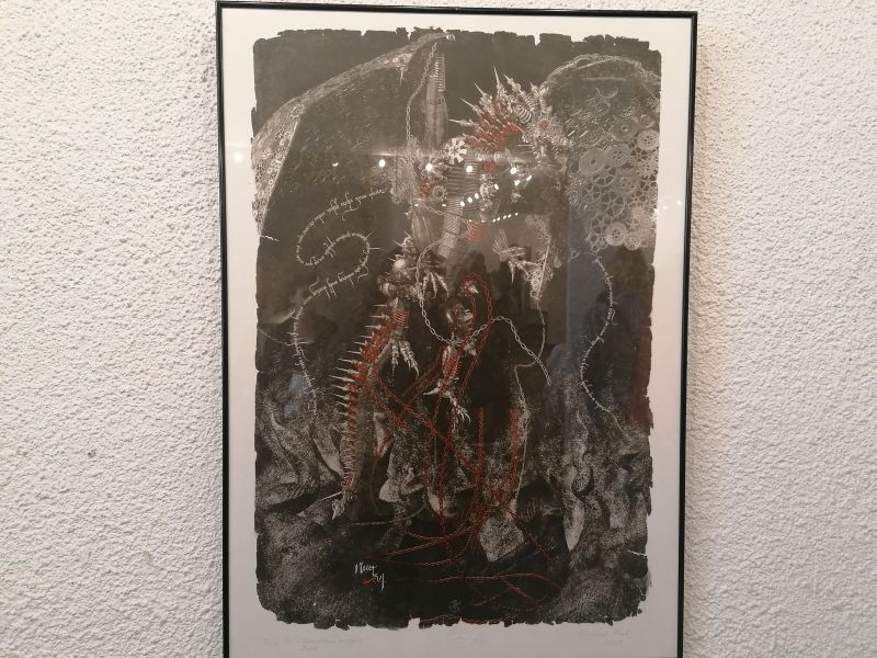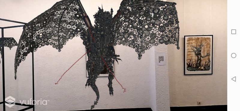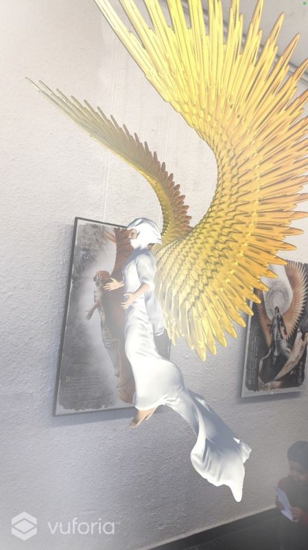 В експозицията бяха представени сюжети от песните в трите части на „Божествена комедия“ на Алигиери - „Ад“, „Чистилище“ и „Рай“. Различното от обичайните изложби бе, че всеки можеше да види образите от окачените графики в добавена, виртуална реалност, ако изтегли специално създаденото приложение DanteAR и насочи смартфона или таблета си към творбите на стената. Това създава усещането, че образите „оживяват“. Само на метри през телефона си посетителят можеше да „срещне“ ангел със златни криле, разтворил ръце за прегръдка; дракон, извисил внушителна фигура почти до тавана; огнена сфера, пламтяща във въздуха, и ред други персонажи и явления, които героят в „Божествена комедия“ описва по пътя си към спасението. Подобни възприятия при досега с изкуството сливенската публика преживява за първи път.