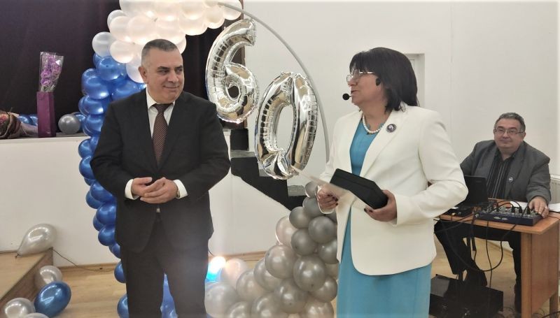 Кметът връчи Плакет на Община Сливен на директора Татяна Башева-Кънева по повод 60 години от създаването на гимназията.
