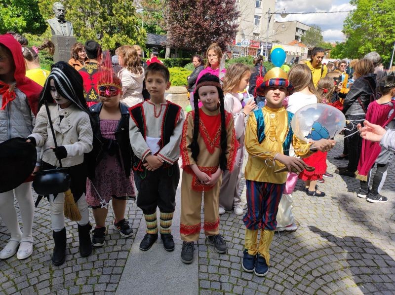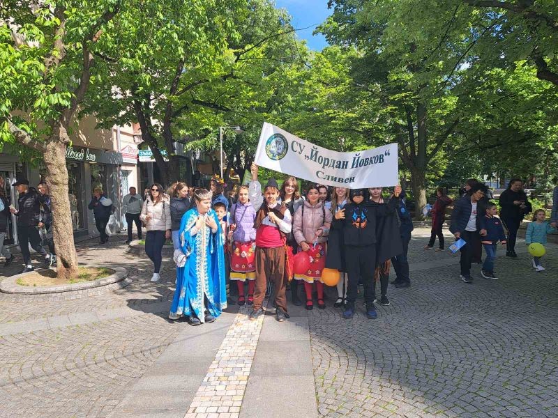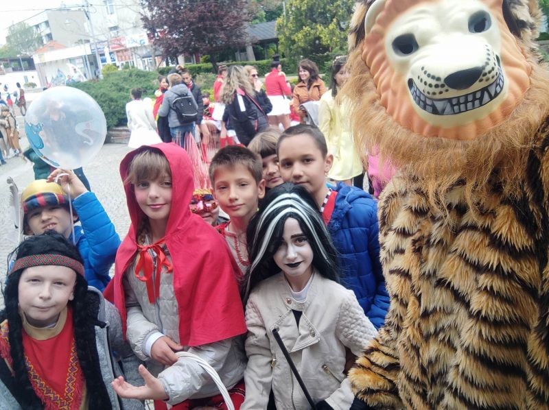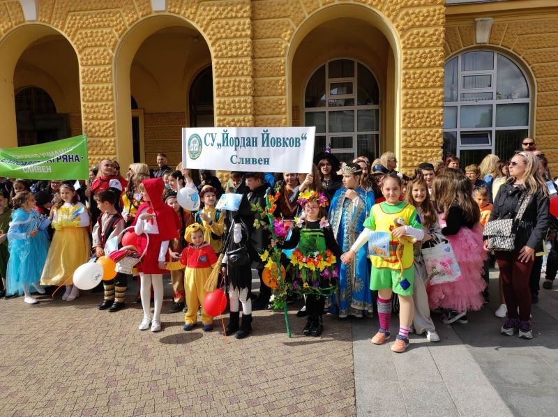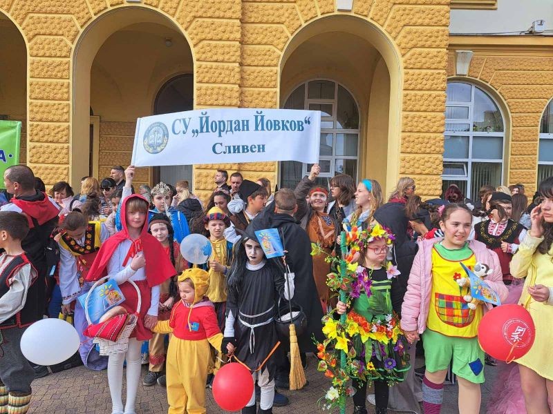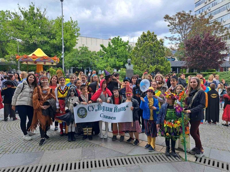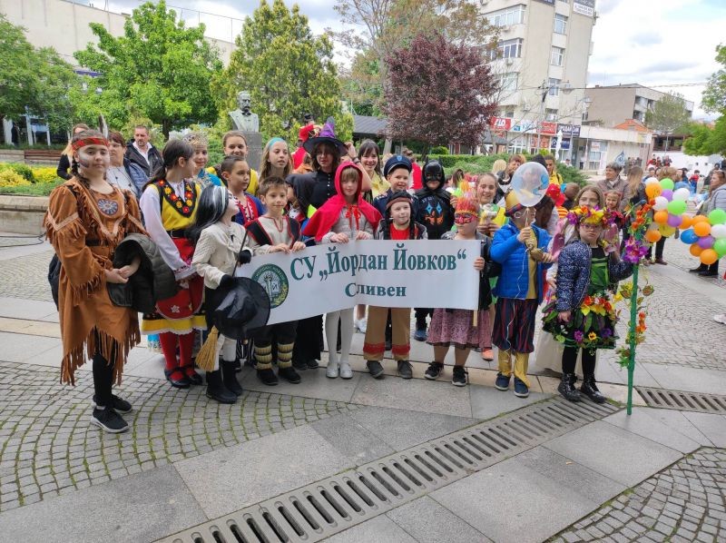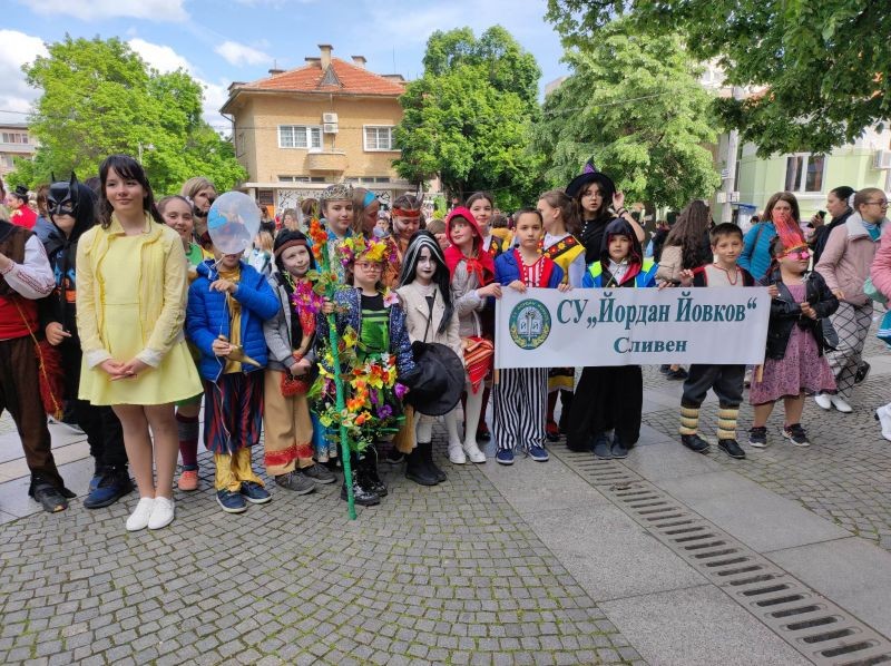 Ученици от СУ "Йордан Йовков" - Сливен се включиха в карнавалното шествие, посветено на XXV Национален фестивал на детската книга.