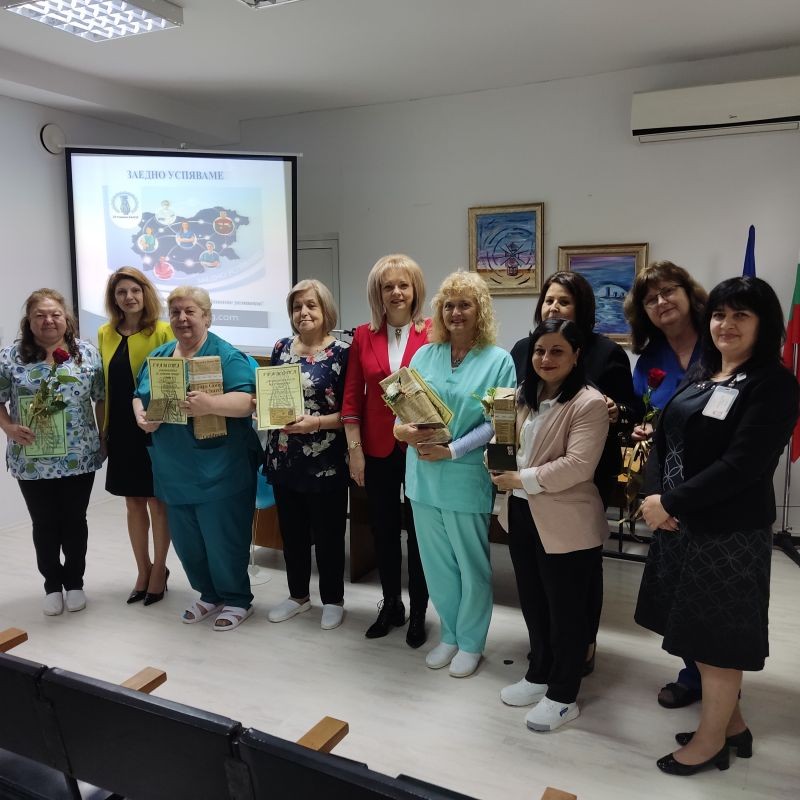 Медицински специалисти от МБАЛ „Д-р Иван Селимински“-Сливен получиха награди за професионализъм, дългогодишна и всеотдайна дейност на днешния 12 май - Международен ден на сестринството. Това стана по време на официална церемония в заседателната зала на болницата. Имената на наградените са гласувани по време на заседание на Управителния съвет на първичното дружество към Българската асоциация на професионалистите по здравни грижи към МБАЛ „Д-р Иван Селимински“. Асоциацията е съсловна организация на медицински сестри, акушерки, лаборанти, рехабилитатори, рентгенови лаборанти, ръководители по здравни грижи.