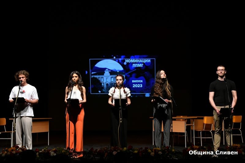 Градоначалникът и председателят на Общинския съвет Димитър Митев бяха гости на церемонията, която винаги предизвиква вълнения сред абитуриентите и техните учители заради връчването на най-високото отличие на гимназията за значими резултати в подготовката и постигнати особени постижения, допринесли за авторитета и престижа на учебното заведение.