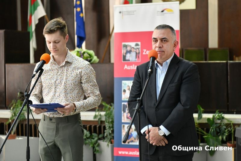 За мен, като възпитаник на Езиковата гимназия, е чест и гордост да присъствам на този вълнуващ момент, заяви кметът Стефан Радев в обръщението си към зрелостниците. „Немските езикови дипломи отварят нови възможности, които поколенията преди вас не са имали. Знам, че зад тези дипломи стоят много труд, много постоянство“, каза още Радев и поздрави всички зрелостници от гимназията, както и преподавателите им, за високите резултати в обучението през изминалите години. „Сливен винаги ще очаква младите хора, които днес завършват училище, да се върнат в родния град с придобити нови знания и нов кръгозор!“, допълни кметът.