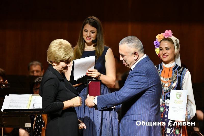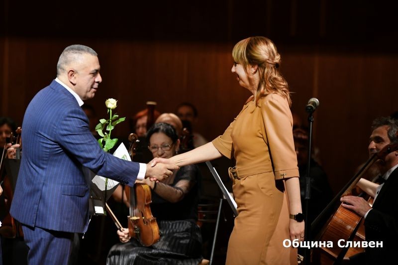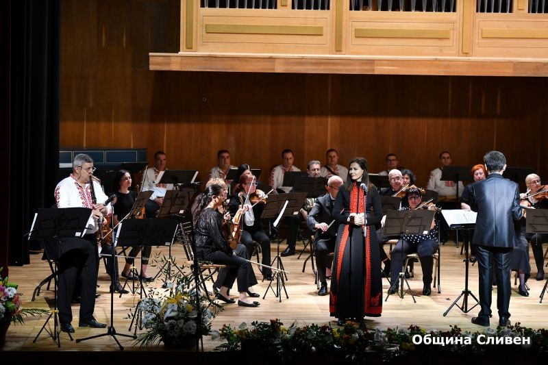 Приятни вълнения на тържествената вечер предизвикаха и изпълненията на Сливенския симфоничен оркестър с хора и оркестъра на Ансамбъла за народни песни и танци „Сливен“ под диригентството на маестро Георги Андреев.