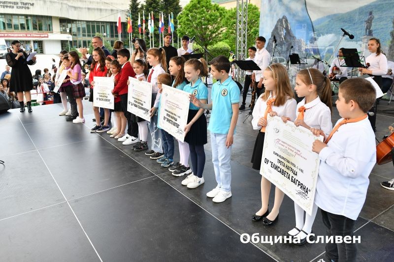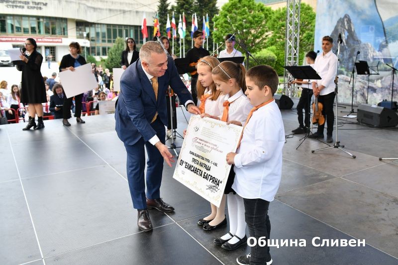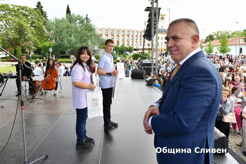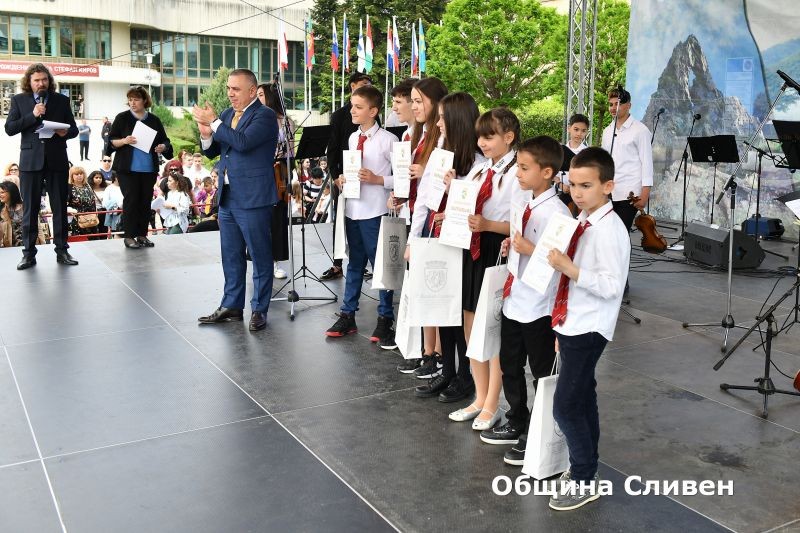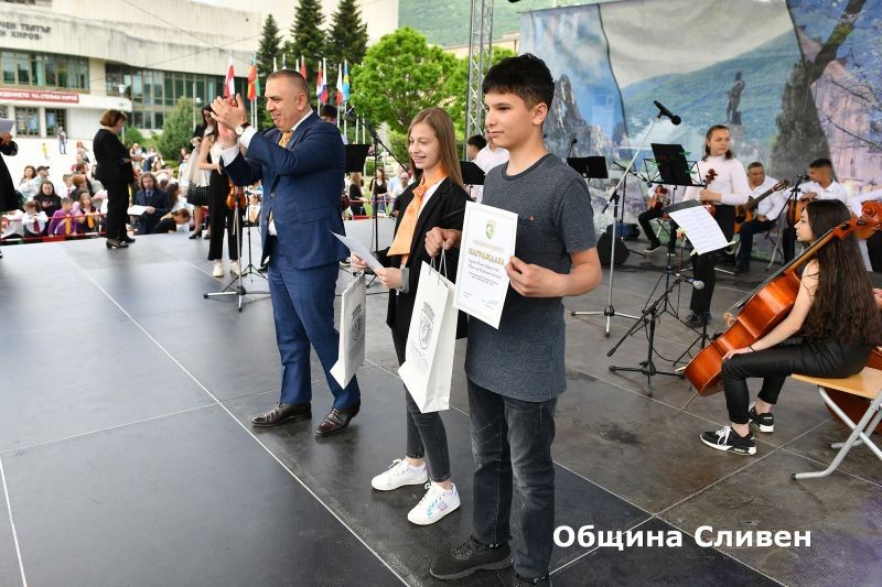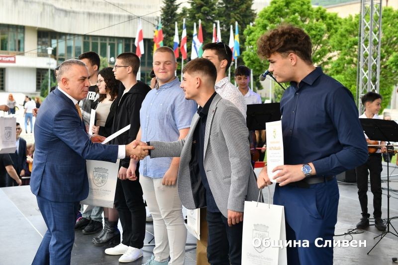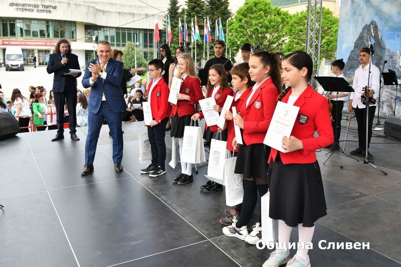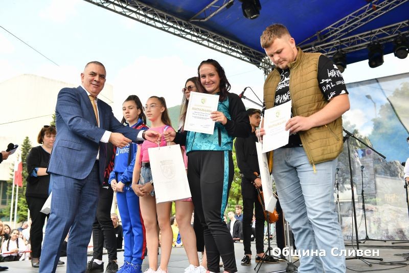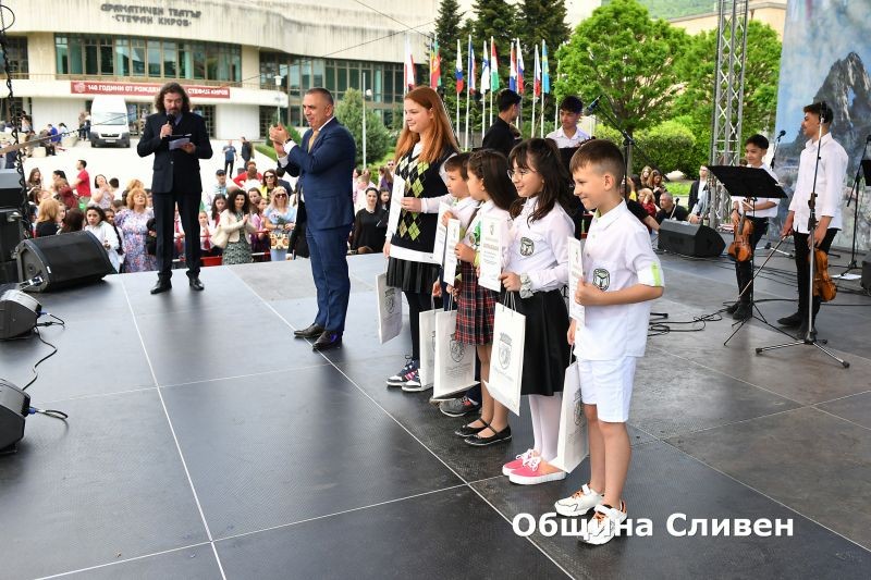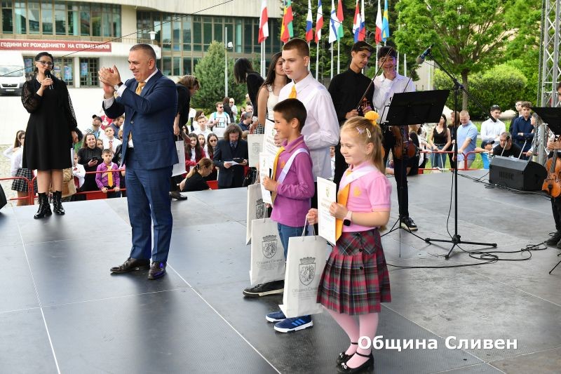 Ученици-носители на награди от национални и международни състезания, олимпиади и конкурси, с високи постижения в науката, изкуството и спорта през изминалата учебна година, бяха отличени от Община Сливен. Кметът Стефан Радев връчи наградите на 82 деца и младежи от сливенските училища по време на церемония, включена традиционно в програмата за отбелязване на 24 май – Деня на светите братя Кирил и Методий, на българската азбука, просвета и култура и на славянската книжовност!