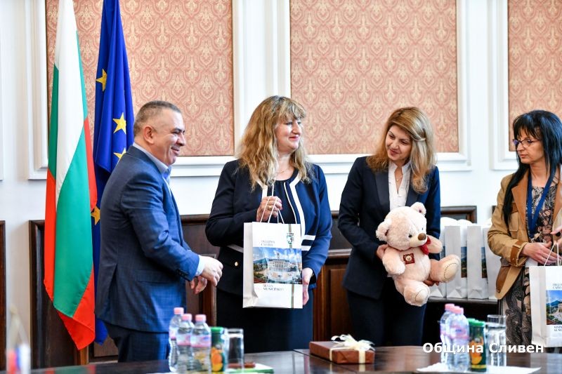 Кметът Стефан Радев посрещна днес в Общината представители на танцовите състави, които участват в Международния детски фолклорен танцов фестивал „Приятелство без граници“. На срещата дойдоха ръководители и деца от всички групи - Грузия, Молдова, Полша, Румъния, Словакия, Сърбия, Турция и домакините от СОУ „Елисавета Багряна“ – Сливен, България.