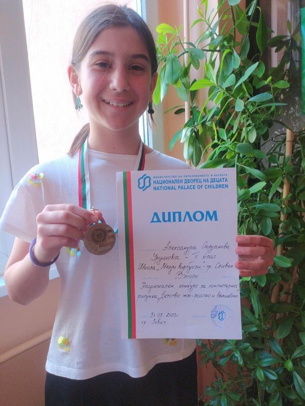 Пореден успех за Александра Урумова от 5. „Б” клас - II място в Национален конкурс за компютърна рисунка "Детство мое - реално и вълшебно!"