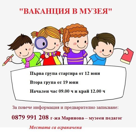 РИМ - Сливен организира петдневна образователна програма "Ваканция в музея" за деца от първи до четвърти клас.