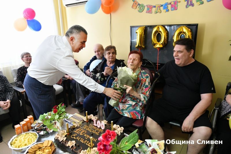 Столетницата Емилия Петкова посрещна вековния си юбилей на трогателен празник в Дома за стари хора в Сливен на 5 юни, заедно със служителите, приятелите и родствениците, които продължават да се грижат за нея. Сред гостите на тържеството бяха кметът Стефан Радев и заместникът му по хуманитарни дейности Пепа Чиликова.