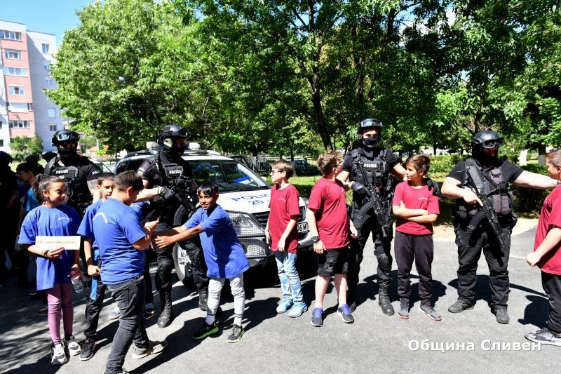 „Ваканция, здравей! Да играем безопасно!“ е част от програмата на МВР „Работа на полицията в училищата“ и се осъществява съвместно с МКБППМН към Община Сливен. Основната цел на събитието е превенция на пътната безопасност.