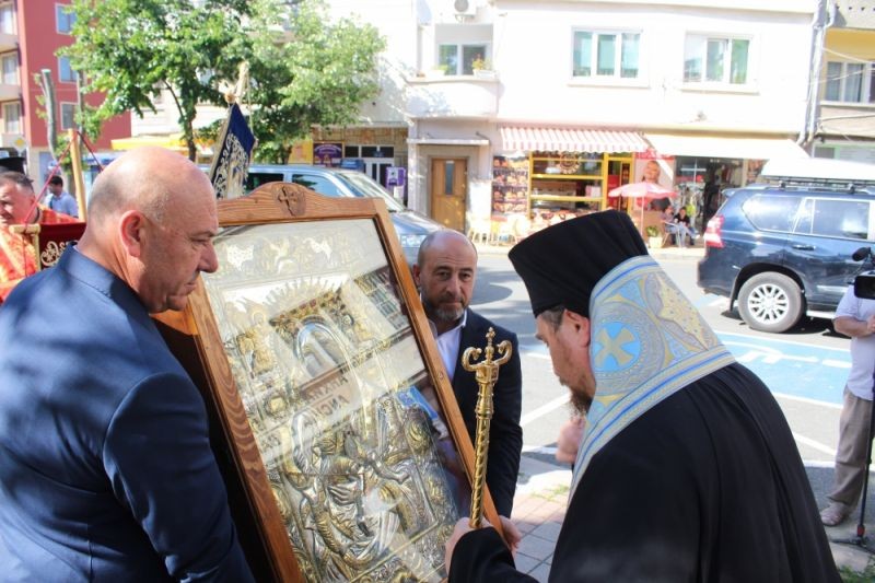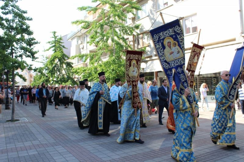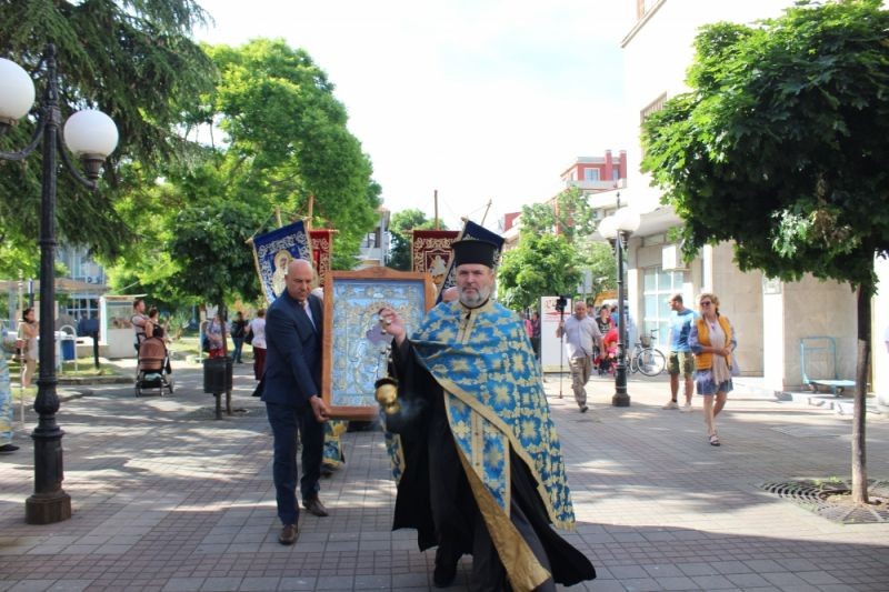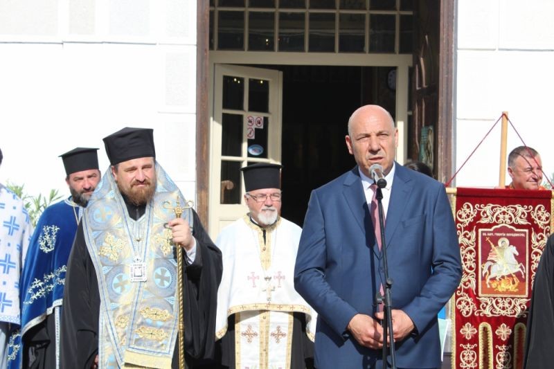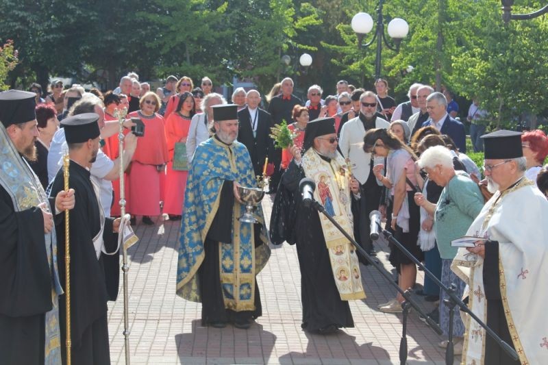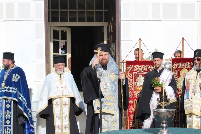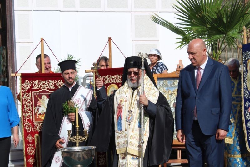 Пред храма на църквата по традиция бе отслужен празничен водосвет. Чинопоследованието бе предстоявано от Негово Високопреосвещенство Старозагорския митрополит Киприан, с когото съслужиха Негово Преосвещенство Агатополския епископ Йеротей, ставрофорен иконом Кирил Попов, протоиерей Борис Георгиев, председател на храма домакин, епархийски духовници и гостуващи свещенослужители. Църковните песнопения бяха изпълнени от Представителния хор на Старозагорска епархия „Свети Апостол Карп“.