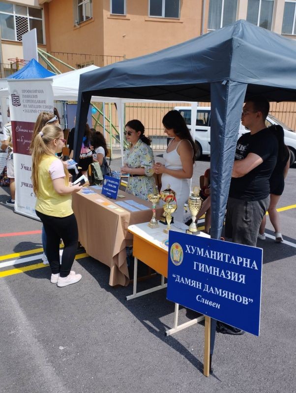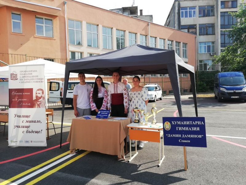 На 20 юни в двора на ОУ „Христо Ботев“ се проведе традиционната "Панорама на образованияето", на която гост бе и Хуманитарна гимназия "Дамян Дамянов". Панорамата има за цел да представи възможните алтернативи за седмокласниците, представени от училищата в Сливен. Наши ученици от 8. до 10. клас се включиха активно в презентирането на двете специалности, които предлага Хуманитарна гимназия: паралелка с профил „Хуманитарни науки“ и професионална паралелка „Екскурзовод“. Благодарим на организаторите на "Панорама на образованието", които и тази година дадоха възможност на кандидат-гимназистите да направят своя информиран избор.