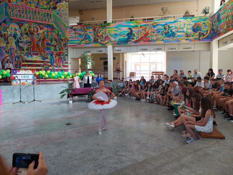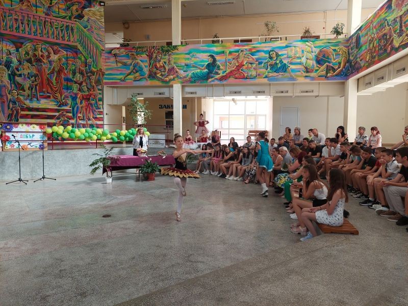 Учениците бяха поздравени с песни, изпълнени от Йоана Йорданова, Ивелина Димитрова, балет „Пети па“ и танц на мажоретен състав.