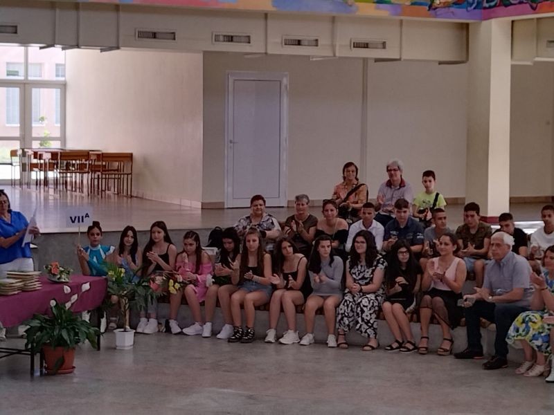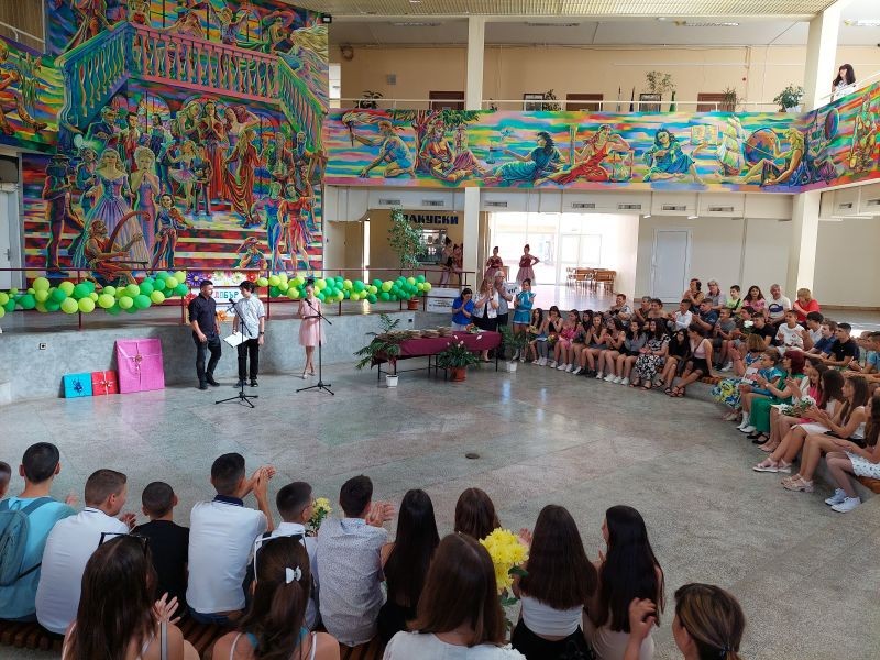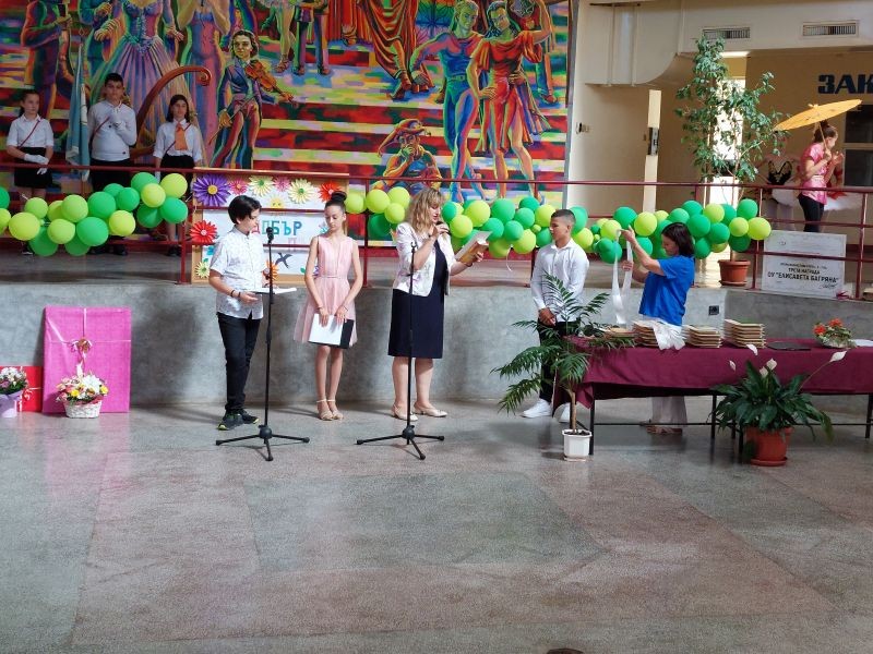 На вълнуващото тържеството присъстваха техните учители по предмети, началните им учители, родители и приятели. Първа ги поздрави г-жа Величка Христова-директор на училището. Тя с гордост отбеляза постигнатите високи резултати на учениците в различни области през учебната годината. Пожела им да бъдат все така успешни и в бъдеще. Награди пълните отличници на випуска – Иван Добрев, Диляра Ахмедова, Дарина Щерева и Светлозар Митев.