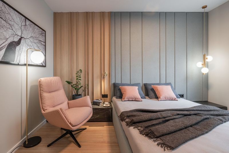 Също така много дизайнери обичат да поставят кресло в един от ъгълите на спалнята, не само като място за почивка, но и като още едно място за дрехи и лични аксесоари, когато бързате.