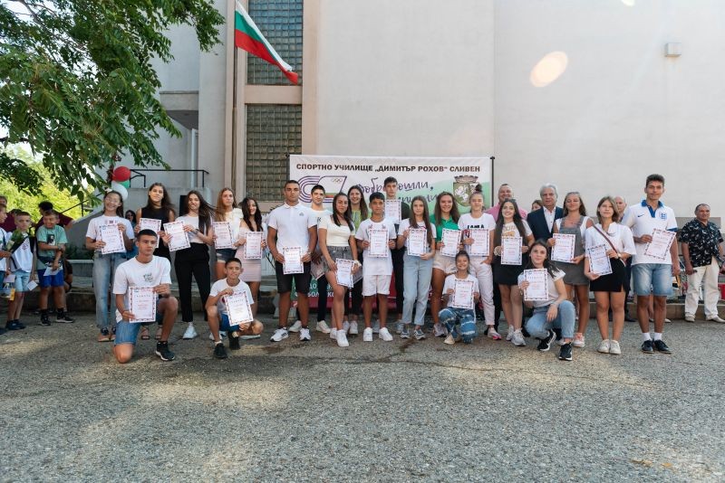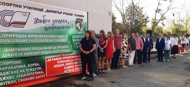 Новата 2023 - 2024 учебна година беше тържествено открита в присъствието на много гости, родители, учители и ученици. Приветствия поднесоха кметът на Община Сливен Стефан Радев, Енчо Керязов - заместник кмет на Община Ямбол, Станка Златева - двукратна вицеолимпийска шампионка по свободна борба. Учениците и учителите днес бяха в облекла с национални мотиви, за да засвидетелстват своята гордост от завоюваните 148 медали от държавни първенства и 175 от национални състезания и международни турнири. В своето приветствие директорът на училището Лъчезар Дойчев заяви: "Радваме се на вашите постижения в учението и в спорта. Вие прославяте нашата родина и всичко българско. Затова днес ние, вашите учители и треньори, на които се доверявате и които безрезервно и с любов ви водят по пътя на знанието и спортната слава, сме с облекла, вплитащи в себе си националните мотиви и магията на древните български традиции. Нека родното да бъде винаги с нас, развявайте с достойнство българския трибагреник от стълбичката на победителите, за да създавате нови страници в историята на любимото ни училище."
